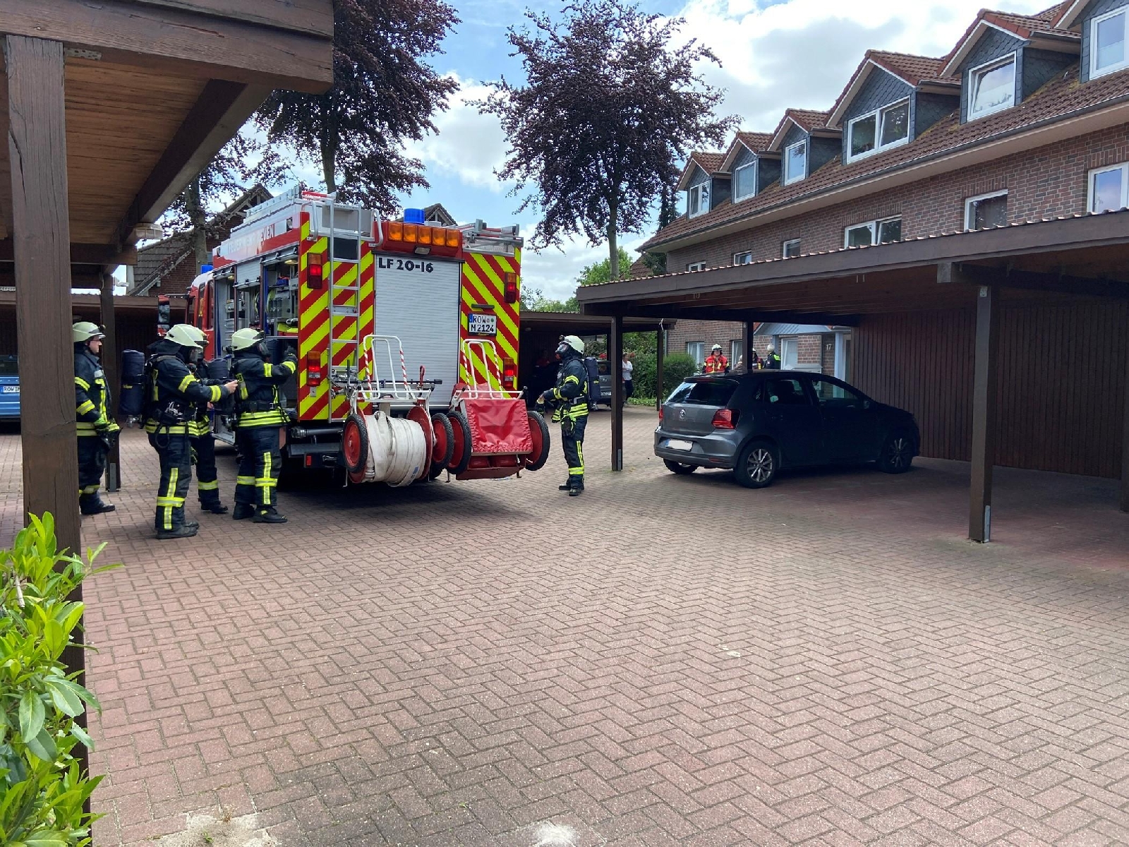 Bei der ersten Erkundung der Wohnung fanden die Einsatzkräfte einen eingeschalteten Herd und verbranntes Essen auf diesem vor. Außerdem war der Hund des Bewohners noch in der Wohnung. Dieser konnte ohne Schaden an sein Herrchen übergeben werden.
