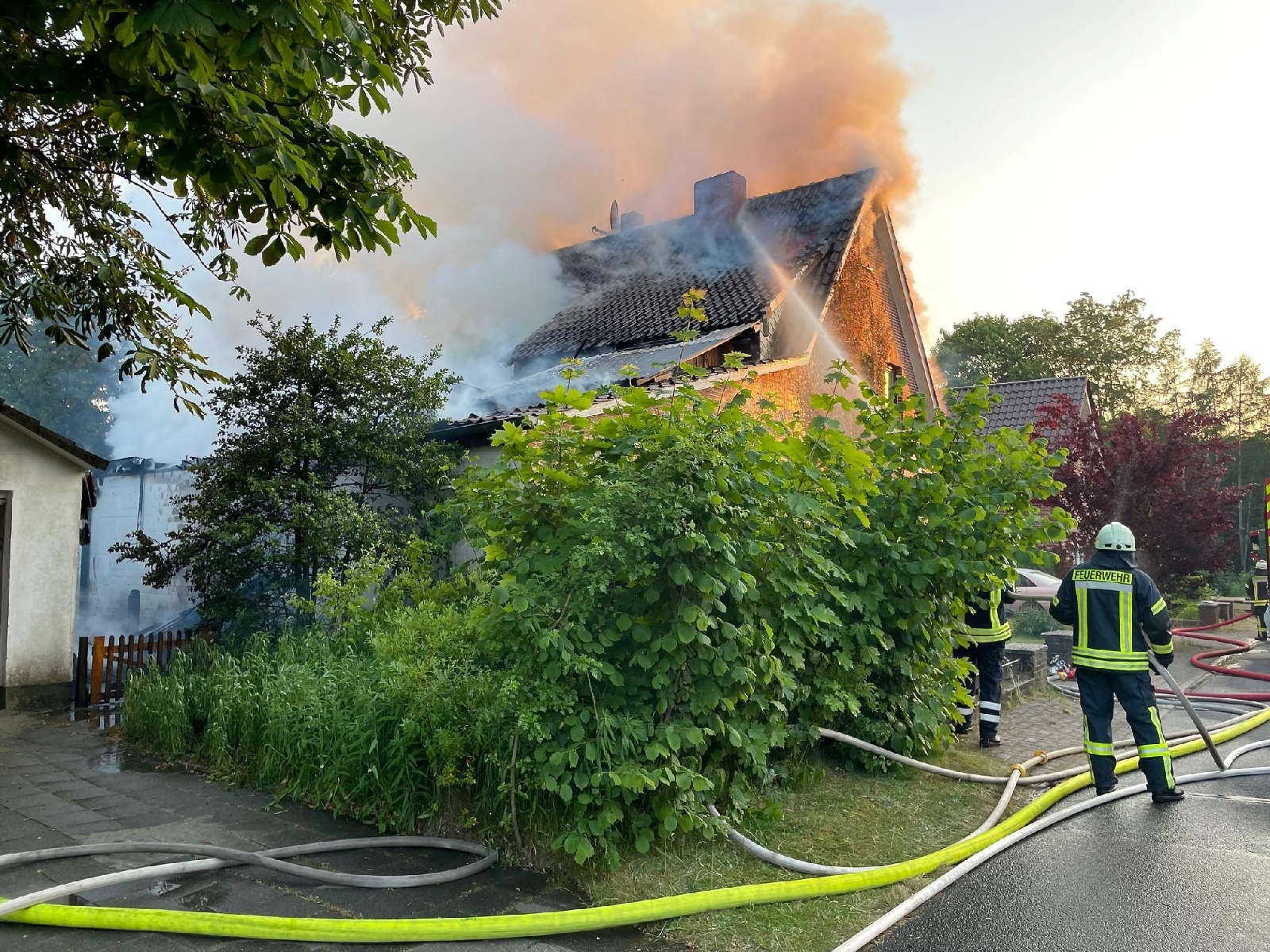12.06.2023 Bademühlen (as). Zu einem Großfeuer kam es am Montagabend gegen 20.40 Uhr im Fuhrenweg in Bademühlen. Dort brannte aus ungeklärter Ursache ein Einfamilienhaus.