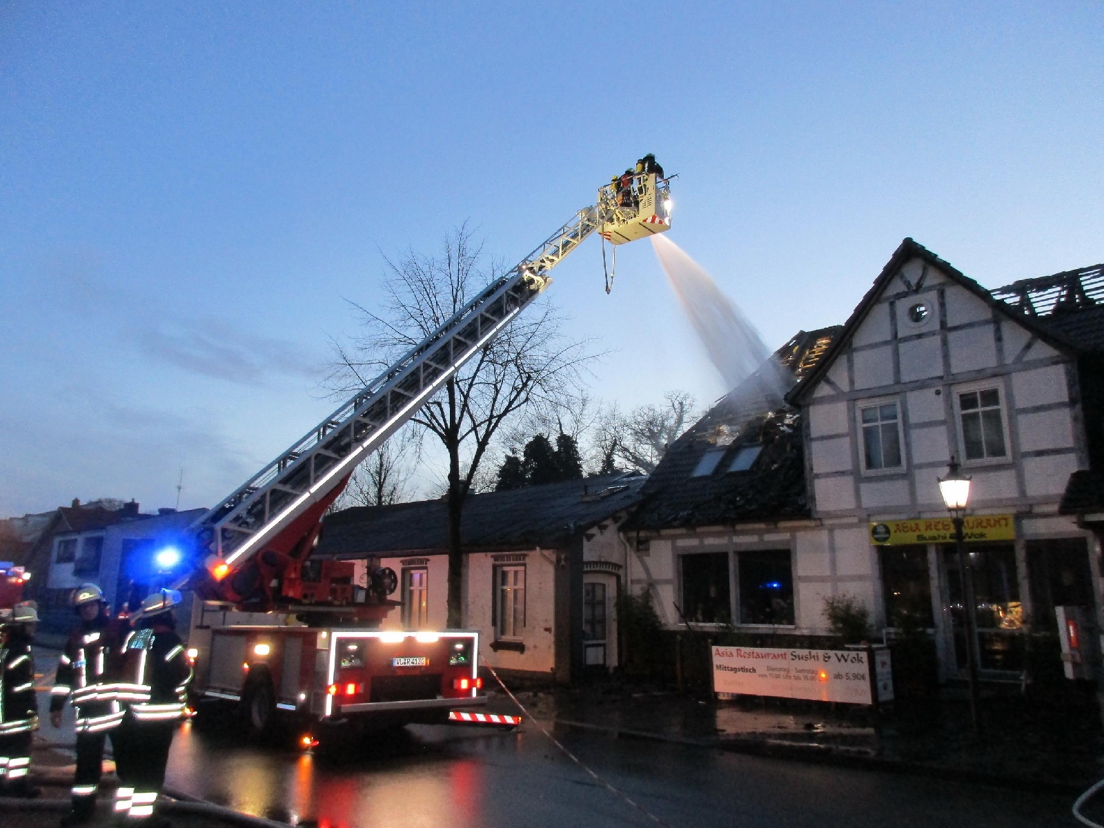 23.03.2019 Sittensen (as). Am Samstagnachmittag gegen 16 Uhr kam es in der Straße „Am Markt" in Sittensen zu einem Feuer in einem Wohn- und Geschäftsgebäude. Das Feuer brach aus ungeklärter Ursache im Erdgeschoss des Restaurants aus und breitete sich rasend schnell in den Dachstuhl aus. Anfangs sollten sich noch Menschen im Gebäude befinden, diese Bestätigte sich glücklicherweise nicht.