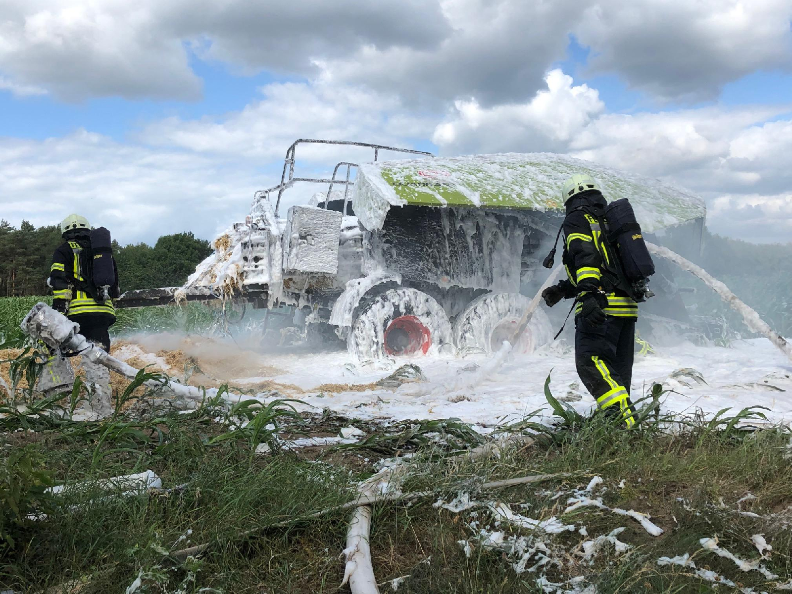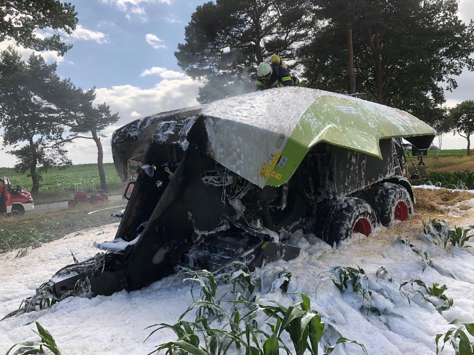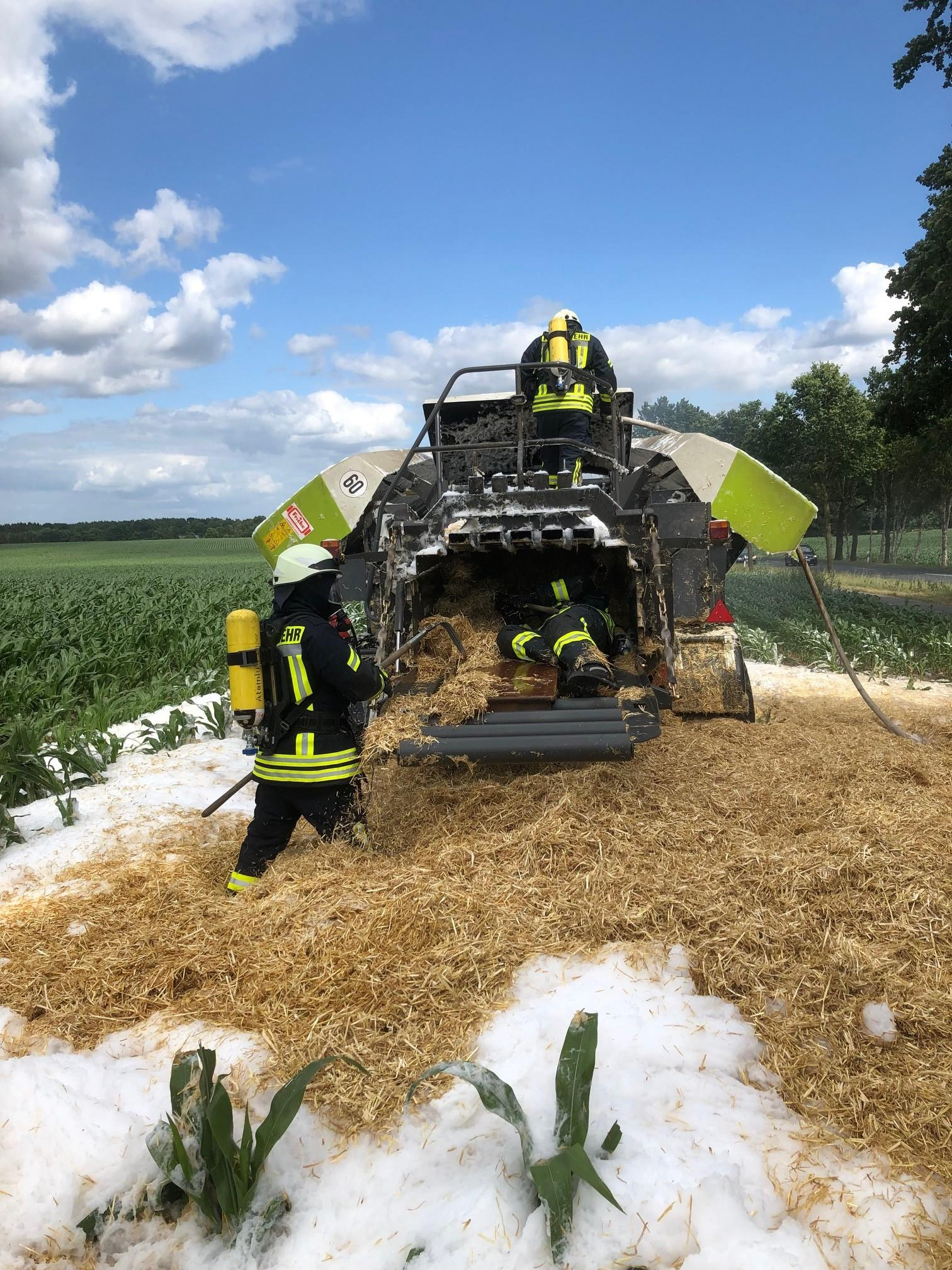 Bademühlen(tw) Alarm für die Ortsfeuerwehren aus Badenstedt und Zeven am 03.07.19 um 15:30 Uhr zu einer brennenden Strohpresse zwischen Bademühlen und Ostereistedt, während des Strohpresssens geriet eine Großballenpresse aus ungeklärter Ursache in Brand. Der Schlepperfahrer hat geistesgegenwärtig die brennende Presse vom Stoppelfeld gefahren und von seinem Schlepper abgehängt,dadurch konnte ein größerer Flächenbrand verhindert werden. Mit den wasserführenden Fahrzeugen aus Badenstedt und Zeven wurde eine Brandbekämpfung durchgeführt. Die Löscharbeiten gestalteten sich schwierig da das teils brennende bzw. glimmende Stroh mühevoll aus der Presse entfernt werden musste.sonstige Informationen
