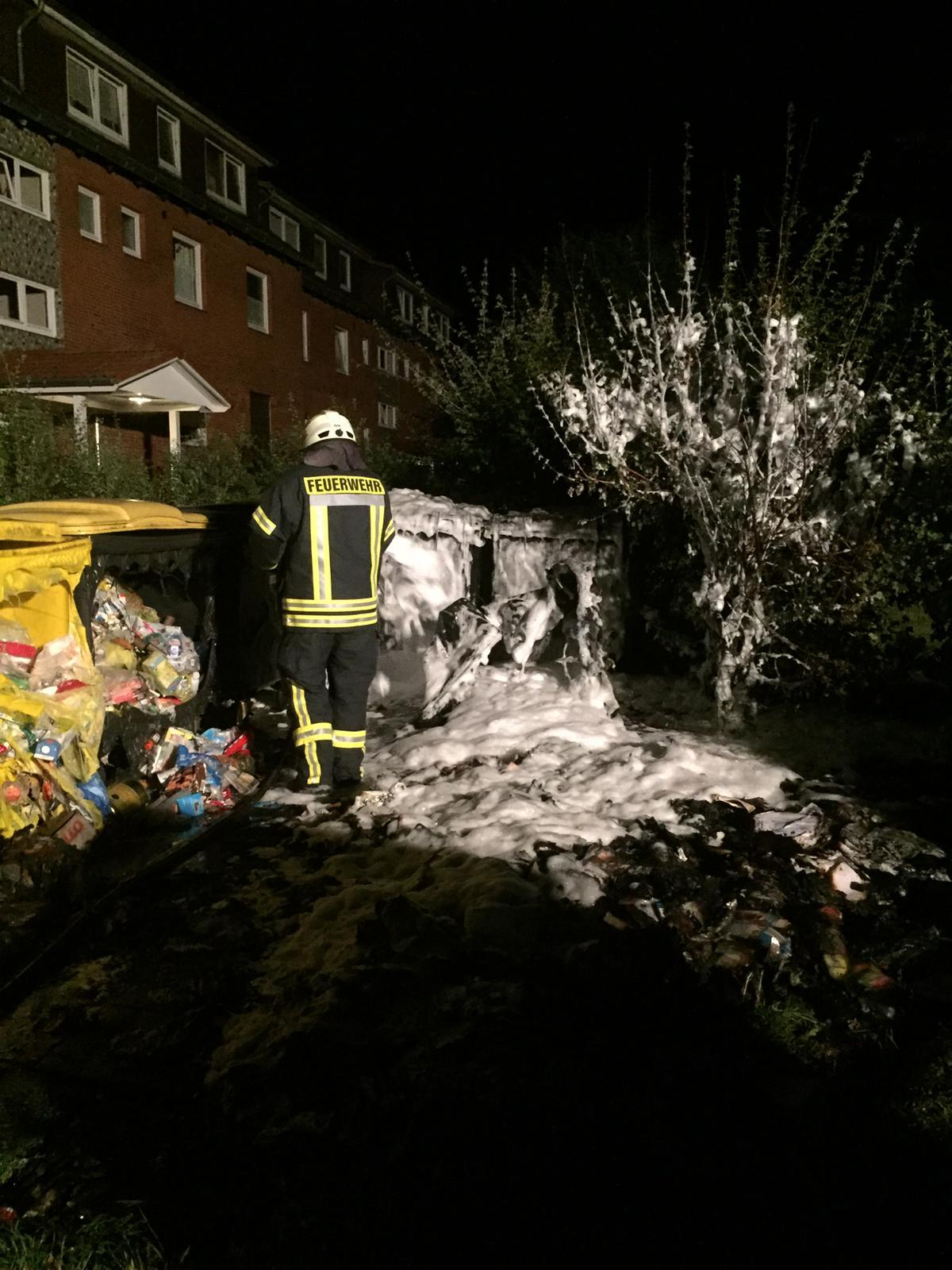 Zeven(tw) Die Ortsfeuerwehr Zeven wurde am 25.07 um 01:33 Uhr zu einer brennenden Mülltonne in die Berliner alarmiert. Bei Eintreffen der ersten Kräfte brannten mehrere 1000l Müllcontainer aus Kunststoff. Brandbekämpfung unter Atemschutz eingeleitet, anschließend die Einsatzstelle eingeschäumt.Nach kurzer Zeit konnte Feuer aus an die Leitstelle gemeldet werden