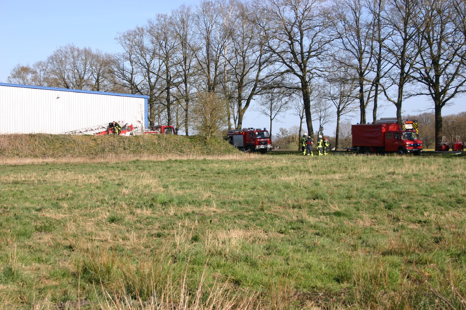 Später musste ein Druckbelüfter eingesetzt werden, um die Halle vom giftigen Rauch zu befreien. Insgesamt waren rund 80 Feuerwehrleute vor Ort. Personen kamen glücklicherweise nicht zu Schaden. Der bereitgestellte Rettungswagen konnte später wieder unverrichteter Dinge einrücken. Für die Dauer des Einsatzes musste die angrenzende Landesstraße 142 voll gesperrt werden. Die Ermittlungen zur Brandursache hat die Polizei aufgenommen. Auch Führungskräfte der Samtgemeinde-Feuerwehr und Kreisfeuerwehr machten sich ein Bild von den Löscharbeiten.
