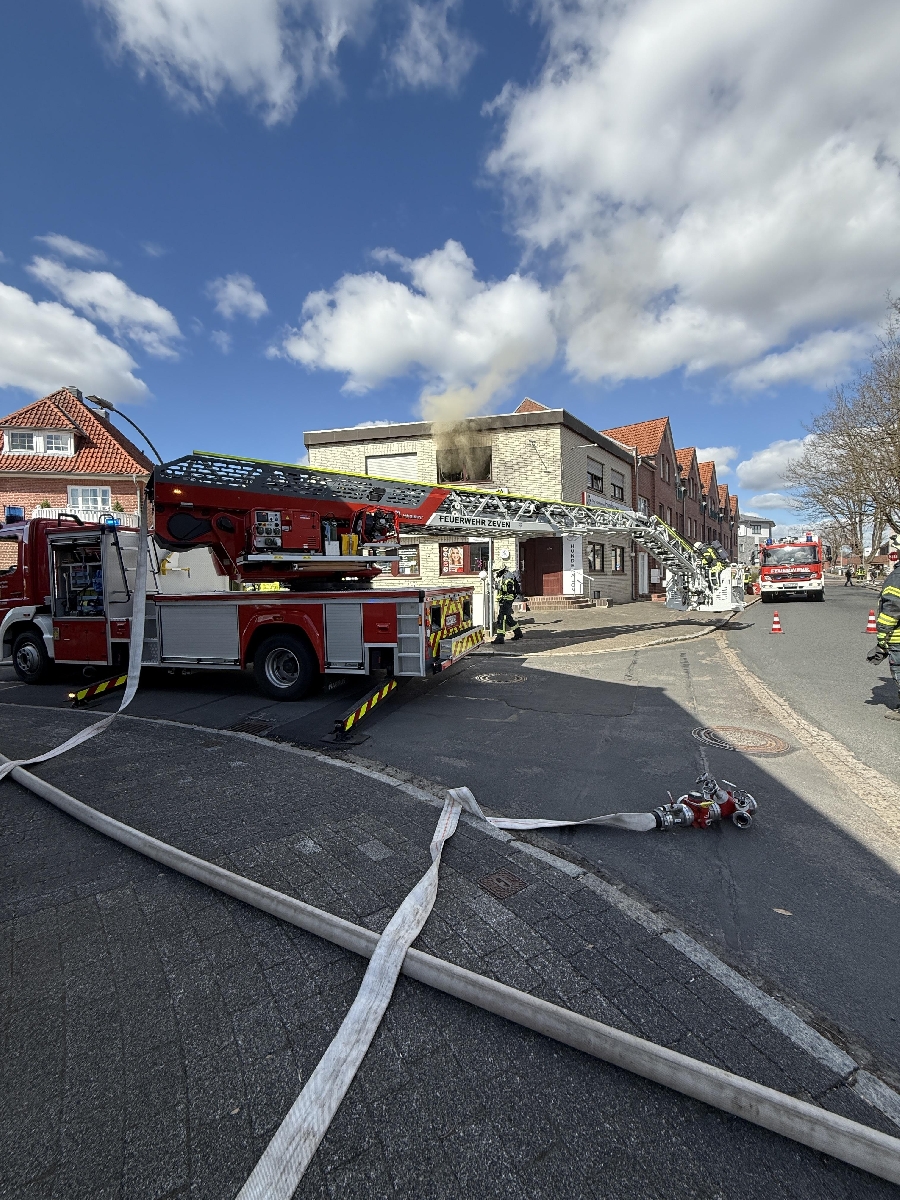 Am Samstagmittag gegen 12.30 Uhr kam es im Zevener Stadtgebiet zu einem Zimmerbrand. Da zunächst eine Person vermisst wurde, hieß es für die anrückenden Einsatzkräfte schnell ins Gebäude zu kommen. Um weitere Unterstützung anzufordern, wurde das Einsatzstichwort von F2 auf F3 erhöht. Das Feuer war in einer Wohnung im OG des Mehrparteienhauses ausgebrochen. Es konnte schnell bestätigt werden, dass sich niemand mehr in den Wohnräumen befand, sodass sich die Atemschutzgeräteträger auf die Brandbekämpfung konzentrieren konnten.