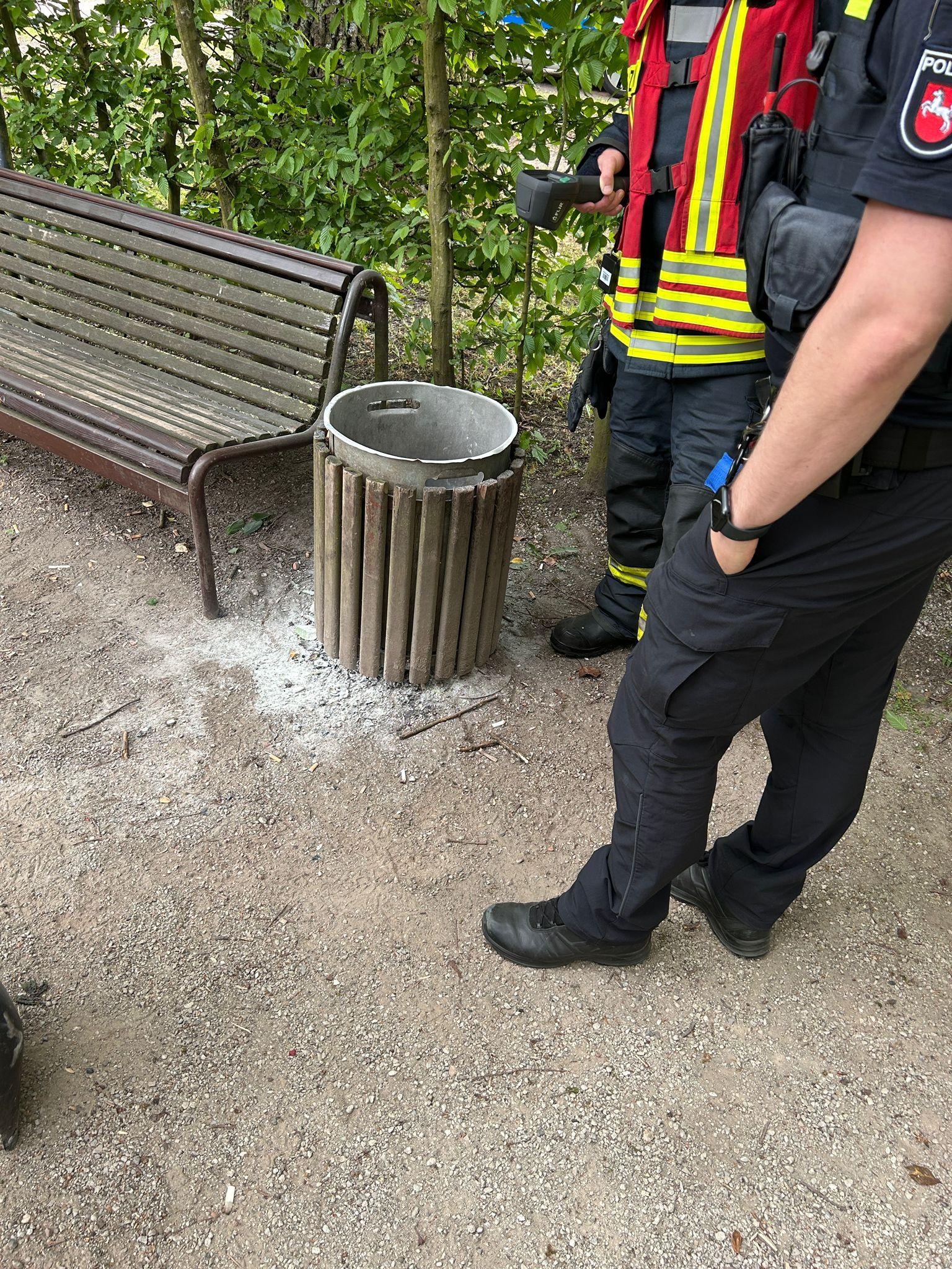 Im Garten hinter der Kirche brannte ein Mülleimer, der bereits vor Eintreffen der Feuerwehr durch eine Polizeistreife erfolgreich mit einem Feuerlöscher gelöscht werden konnte. Der Gruppenführer der Feuerwehr kontrollierte noch kurz mittels Wärmebildkamera und nach wenigen Minuten konnten alle Kräfte abrücken.