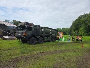 Auch die Bundeswehr aus Seedorf unterstützte die Feuerwehrkräfte im Rahmen der nachbarschaftlichen Löschhilfe mit einem Tankwagen und reihte sich in den durch die Feuerwehr eingerichteten Pendelverkehr mit ein.