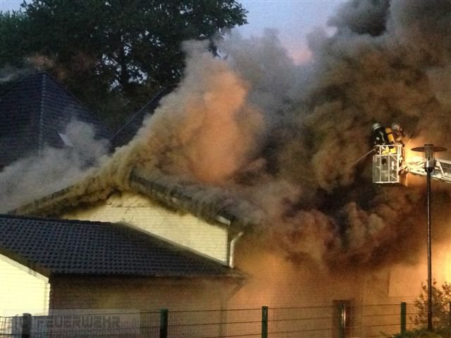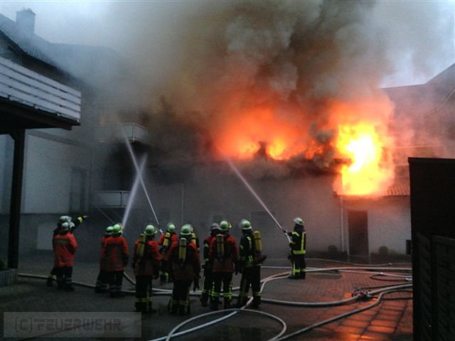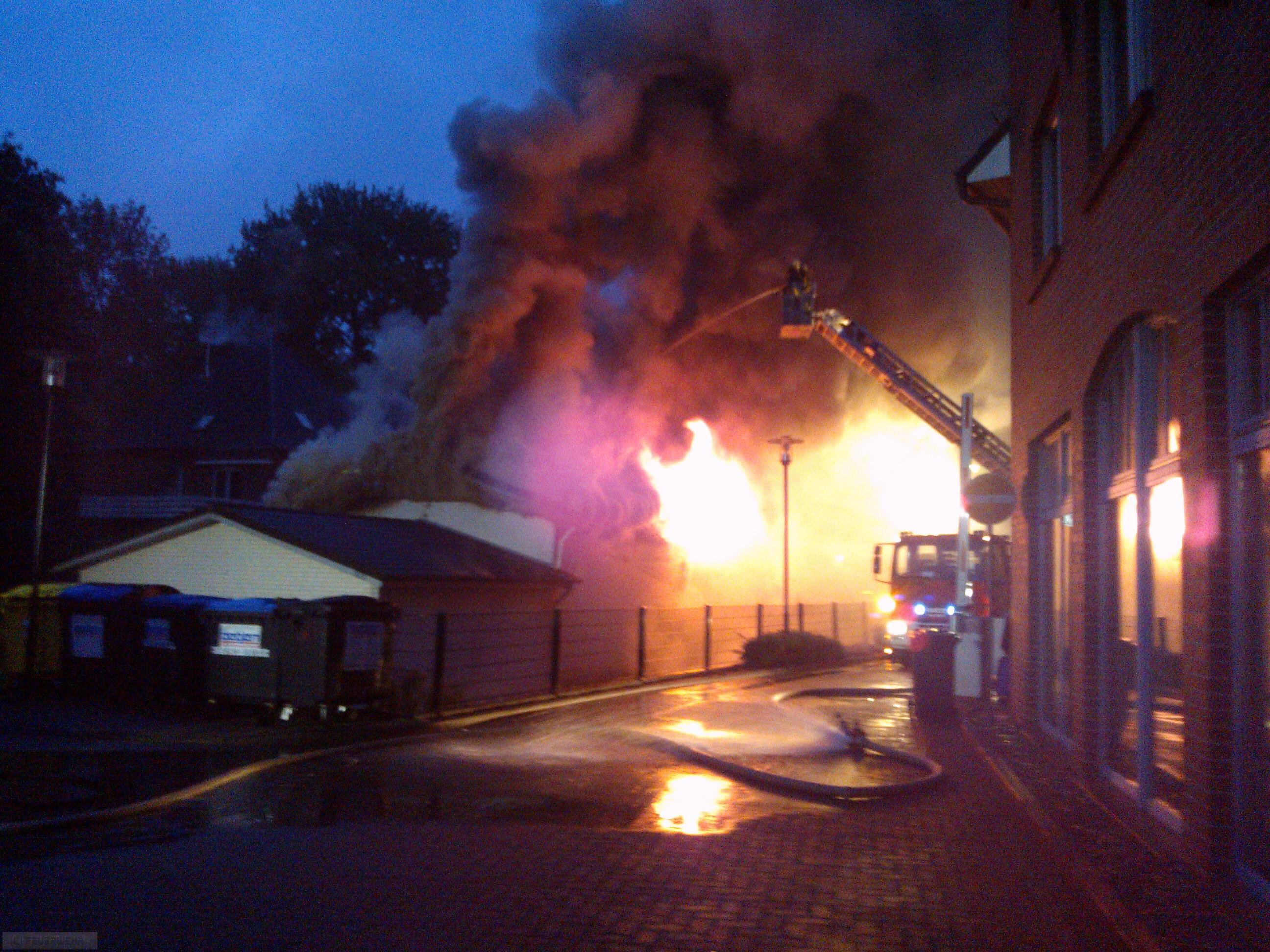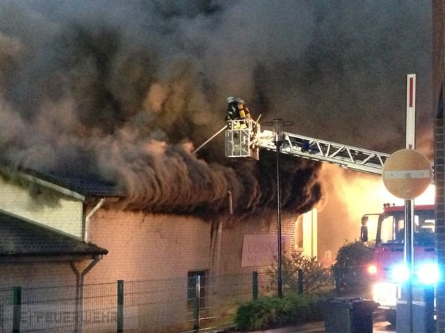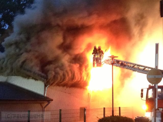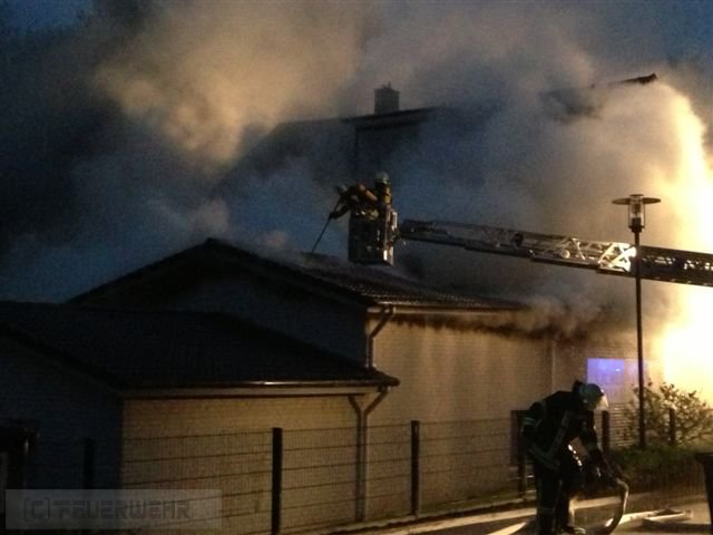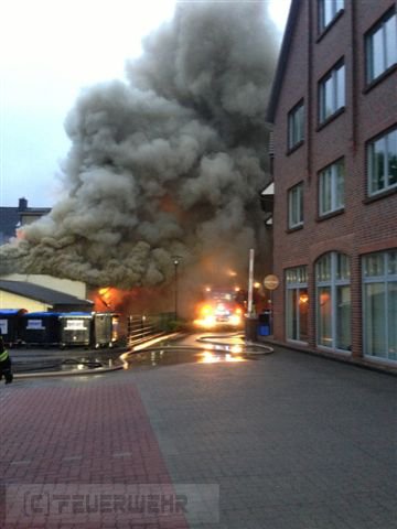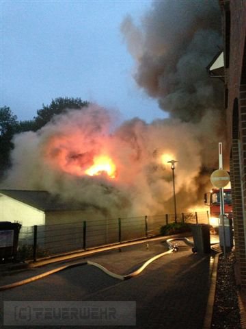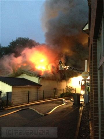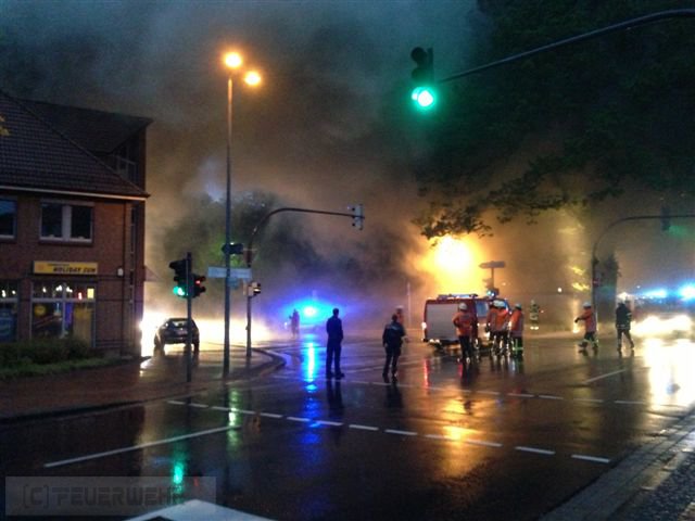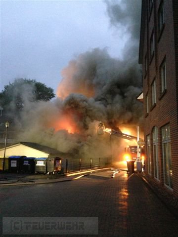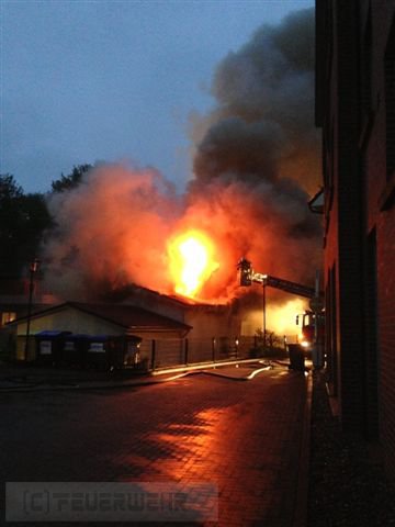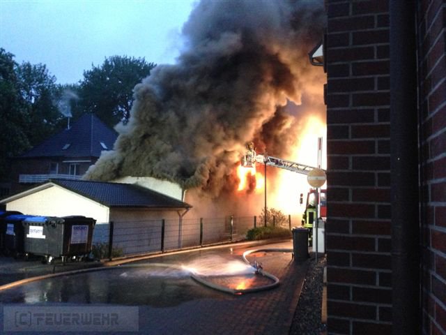 Zeven(oh)Am Samstagmorgen, den 18.05.2013 wurde die Zevener Feuerwehr um 04.28 Uhr zu einem Brandeinsatz bei einem Bestattungsunternehmen in der Labesstraße alarmiert.Ein aufmerksamer Taxifahrer hatte den Qualm bemerkt und den Notruf abgesetzt.Bereits nach sechs Minuten trafen die ersten Kräfte ein. Die Labesstraßee war bereits in dichten Rauch gehüllt, weshalb das Einsatzstichwort erhöht und weitere Kräfte zum Einsatzort beordert wurden.Das Einsatzobjekt bestand aus einem Haupthaus mit Wohnungen und einem Anbau, welcher zu betrieblichen Zwecken genutzt wurde. Aus bislang ungeklärter Ursache kam es im Anbau zu einem Feuer. Dichter Qualm drang unter dem Dach hervor, im weiteren Verlauf kam es zu einer Durchzündung der brennbaren Gase. Beiderseits des Anbaus wurde eine Riegelstellung aufgebaut, um das Haupthaus zu schützen und eine weitere Brandausbreitung zu verhindern. Die Personen aus dem Wohngebäude konnten sicher nach draußen geleitet werden, sodass keine Menschenrettung durchgeführt werden musste. In dem Anbau befanden sich noch zwei Särge mit verstorbenen Personen, diese konnten durch die Feuerwehr jedoch frühzeitig aus dem Gebäude geborgen werden, bevor diese Schaden nahmen.Aufgrund der Beschädigungen durch das Feuer, stürzten Teile der Außenmauer und des Daches vom Anbau ein, sodass dieser schließlich völlig zerstört wurde. Das Haupthaus konnte von der Feuerwehr erfolgreich geschützt werden. Wegen zahlreicher versteckter Glutnester musste der Anbau mit einem Bagger abgebrochen werden, sodass diese sicher gelöscht werden konnten. Um 06.34 Uhr kam die Lagemeldung "Feuer unter Kontrolle", um 10.33 Uhr konnte schließlich „Feuer aus“ gemeldet werden. Die Nachlösch- und Aufräumarbeiten dauerten bis in die Mittagsstunden.Insgesamt war die Feuerwehr mit über 110 Einsatzkräften und 20 Fahrzeugen im Einsatz, 22 Atemschutztrupps wurden zur Brandbekämpfung eingesetzt. Im Einsatz waren die Feuerwehren Heeslingen, Brauel, Badenstedt, Brüttendorf, Wistedt, Wiersdorf, Weertzen, Bremervörde (Drehleiter) und Zeven, sowie der Gefahrgutzug mit dem Gerätewagen Atemschutz. Außerdem waren die Polizei, der Rettungsdienst und die Stadtwerke Zeven im Einsatz. Die Bäckerei Latzel aus Zeven versorgte die Einsatzkräfte während ihres mehrstündigen Einsatzes mit Brötchen und Kaffee.Der laufende Betrieb des Bestattungsunternehmens sei durch den Brandschaden nicht beeinträchtigt.