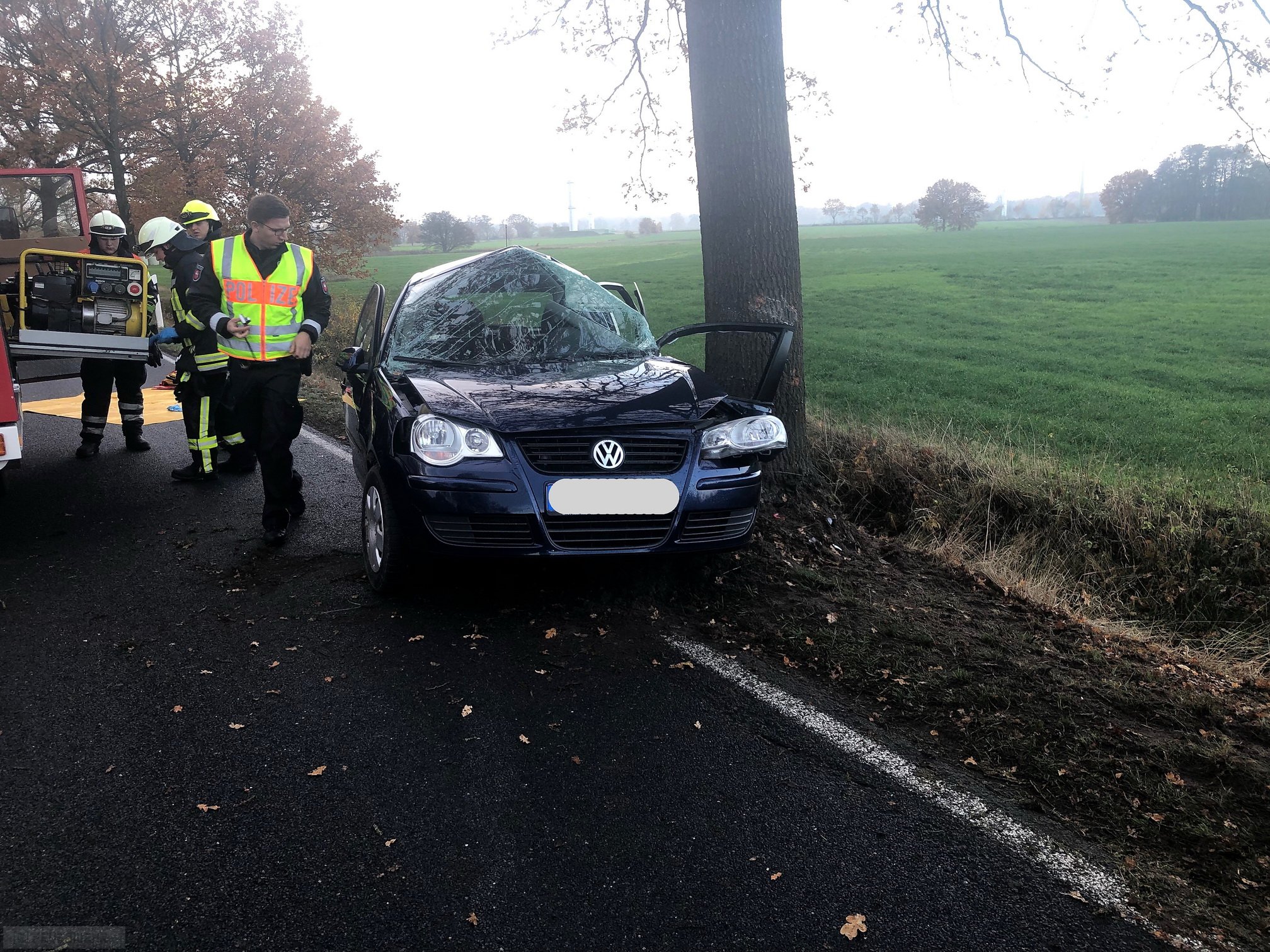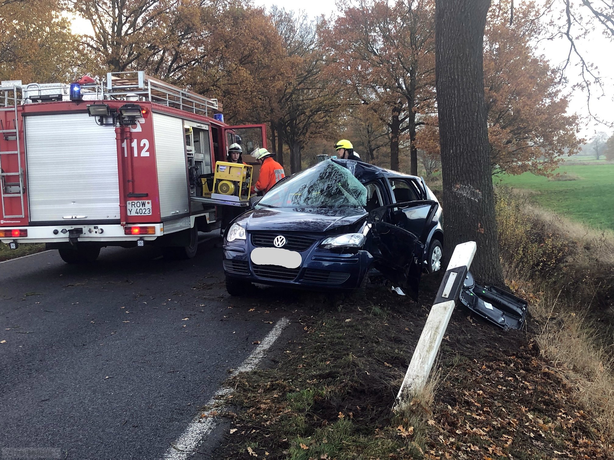 Elsdorf (as). Auf der Landesstraße 131 zwischen Elsdorf und Abbendorf kam es am Dienstag-morgen gegen 8.40 Uhr zu einem schweren Verkehrsunfall. Eine Fahrerin war mit Ihrem VW-Polo aus ungeklärter Ursache seitlich gegen einen Baum geprallt. Dabei wurde sie im Fahrzeug eingeklemmt.