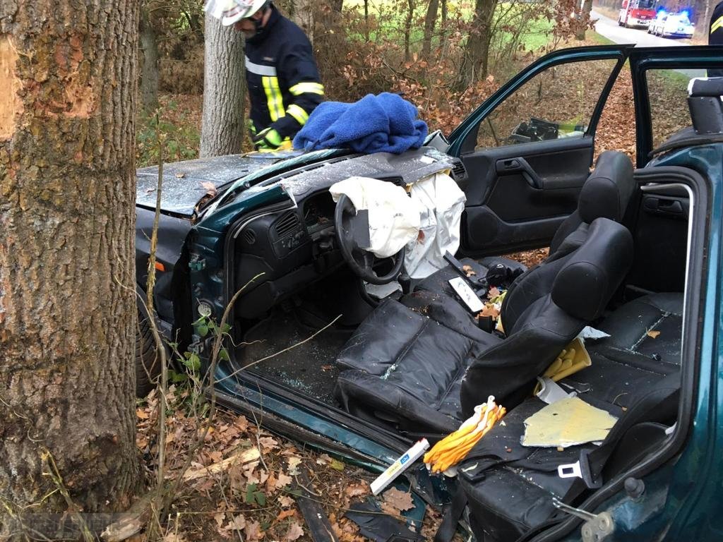 Mit seinem VW Golf war der Mann gegen 15 Uhr auf der Alten Dorfstraße von Badenstedt in Richtung Bademühlen unterwegs. Aus noch ungeklärter Ursache kam der Wagen von der Fahrbahn ab und prallte seitlich mit der Fahrerseite gegen einen Baum. Dabei wurde der Mann im Wrack eingeklemmt.