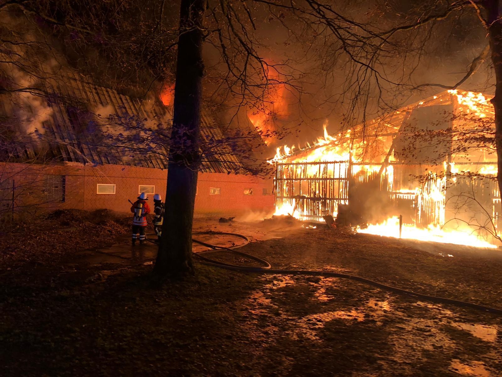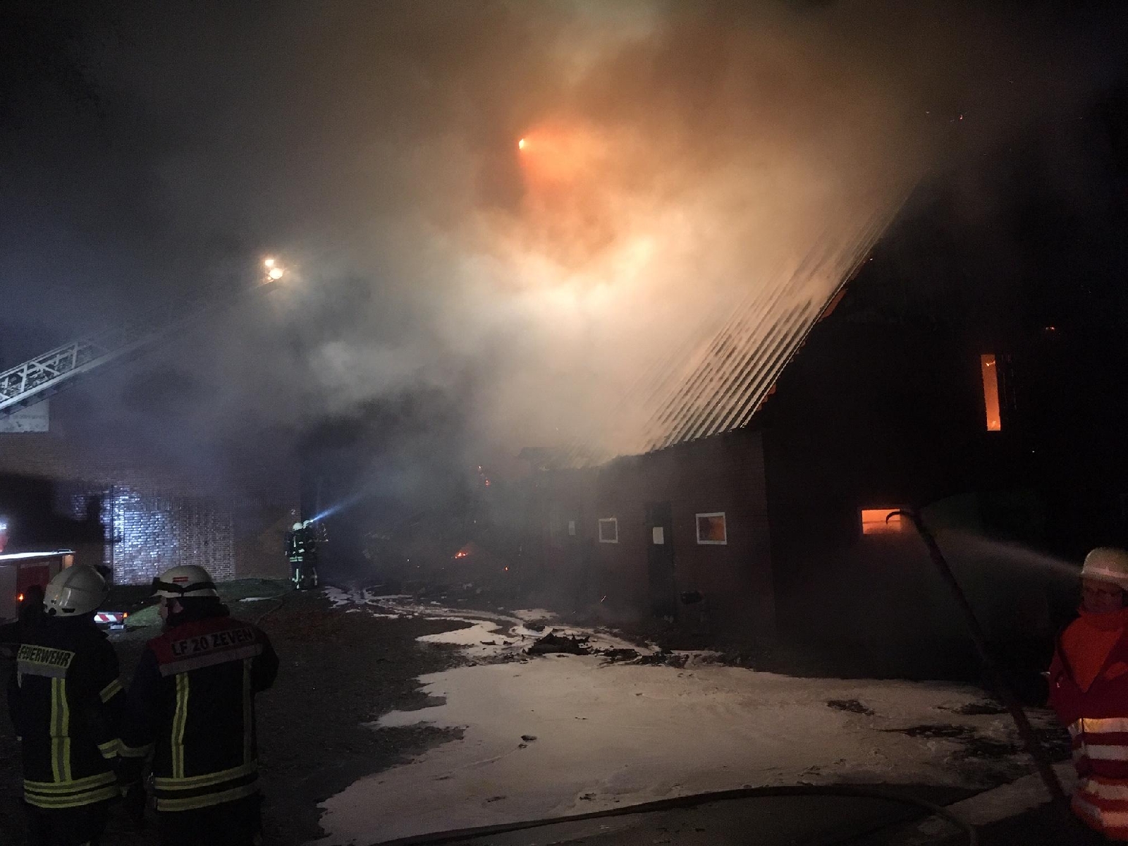 Anderlingen/Ohrel. Am Dienstagabend, um 20.00 Uhr, wurde ein Brand in der Dorfstraße gemeldet. Aus bislang ungeklärter Ursache war eine Scheune, in der u.a. Stroh und Feuerholz gelagert wurden, in Brand geraten. Das Feuer griff anschließend auf ein nebenliegendes, leeres Stallgebäude über. Beide Gebäude brannten vollständig nieder. Auch ein, in der Scheune abgestellter, PKW Opel wurde durch das Feuer zerstört Den Einsatzkräften der Feuerwehr gelang es, ein Übergreifen des Feuers auf das angrenzende Wohnhaus zu verhindern. Menschen oder Tiere wurden nicht verletzt. Der Sachschaden wird auf ca. 200.000 Euro geschätzt.