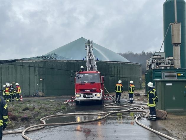 Lavenstedt OT Eitze (as). Zu einem Feuer kam es am Freitagvormittag gegen 10.40 Uhr im Lavenstedter Ortsteil Eitze bei einem landwirtschaftlichen Betrieb. Aus ungeklärter Ursache kam es in einem Behälter einer Biogasanlage zu einer Verpuffung.