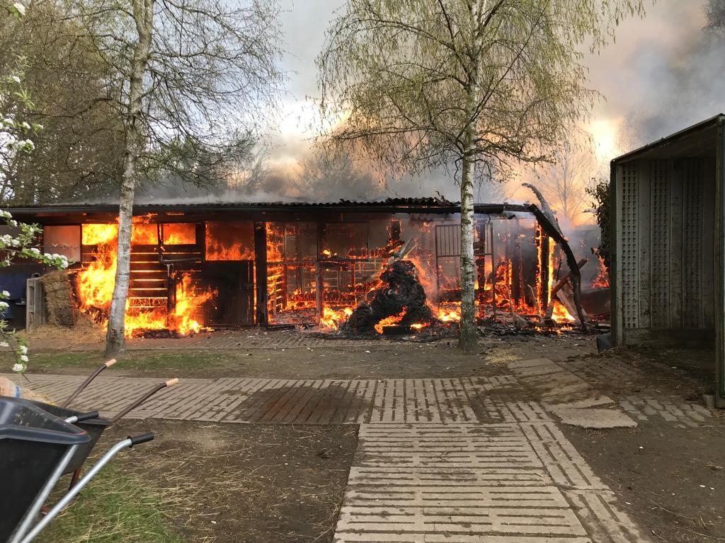 Pferdestall steht in Flammen