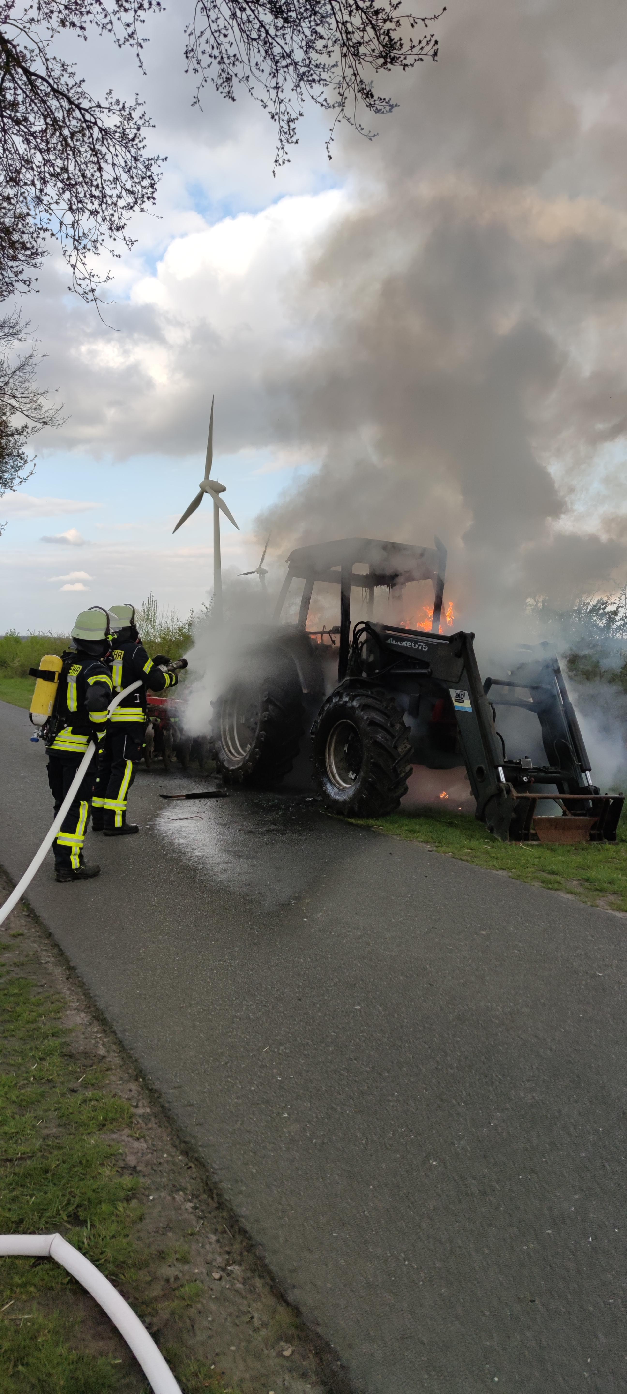 SEEDORF. (bs) Um 17.33 Uhr am Donnerstag, den 27.0.2023 wurden die Feuerwehren Seedorf, Selsingen und Zeven zu einem FK2 brennt Trecker nach Seedorf alarmiert. Der Fahrer des Treckers bemerkte während der Fahrt Rauch aus seinem Fahrzeug steigen und konnte diesen noch rechtzeitig in den Seitenstreifen lenken. Beim Eintreffen der Einsatzkräfte stand dieser bereits in Vollbrand. Die Ortswehren Seedorf und Selsingen löschten den Brand gemeinsam zuerst mit Wasser und anschließend mit Schaum, die Ortswehr Zeven brauchte nicht mehr tätig werden und konnte kurze Zeit später aus dem Einsatz entlassen werden. Zur Schadenshöhe und Brandursache können seitens der Feuerwehr keine Angaben gemacht werden.