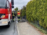Bei Gartenarbeiten wurde versehentlich die große Hecke Opfer des Feuers. Die Anwohner hatten bereits begonnen die Flammen mit einem Gartenschlauch zu löschen. Die eintreffenden Einsatzkräfte führten Nachlöscharbeiten durch und kontrollierten die Hecke und den dahinterstehenden Schuppen mit einer Wärmebildkamera.