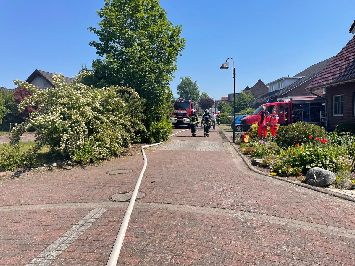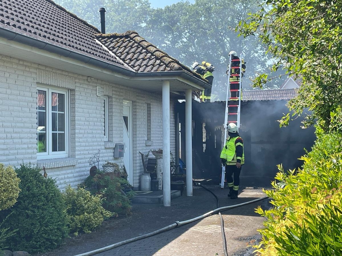 Nachdem die ersten Feuerwehrkräfte vor Ort waren, mussten umgehend mehrere Alarmstichworterhöhungen durchgeführt werden. Da der Brand auf das angrenzende Wohnhaus überzugreifen drohte. Mehrere Trupps unter Atemschutz gingen mit C-Rohren gegen die Flammen vor. Die Zevener Drehleiter wurde auf der Rückseite vorsorglich Stellung gebracht, musste aber nicht mehr eingesetzt werden. Nach rund einer halben Stunde war der Brand so weit unter Kontrolle und es wurden Nachlöscharbeiten durchgeführt. Mit mehreren Wärmebildkameras wurde die Brandstelle auf versteckte Glutnester überprüft. Vorsorglich wurden Dachpfannen aufgenommen, um zu kontrollieren, ob der Brand ins Wohnhaus vorgedrungen ist. Durch das schnelle Eingreifen der Feuerwehren konnte ein größerer Schaden verhindert werden. Das Wohnhaus war lediglich verraucht. Es wurde anschließend mit einem Drucklüfter rauchfrei gemacht. Verletzt wurde bei dem Brand niemand.