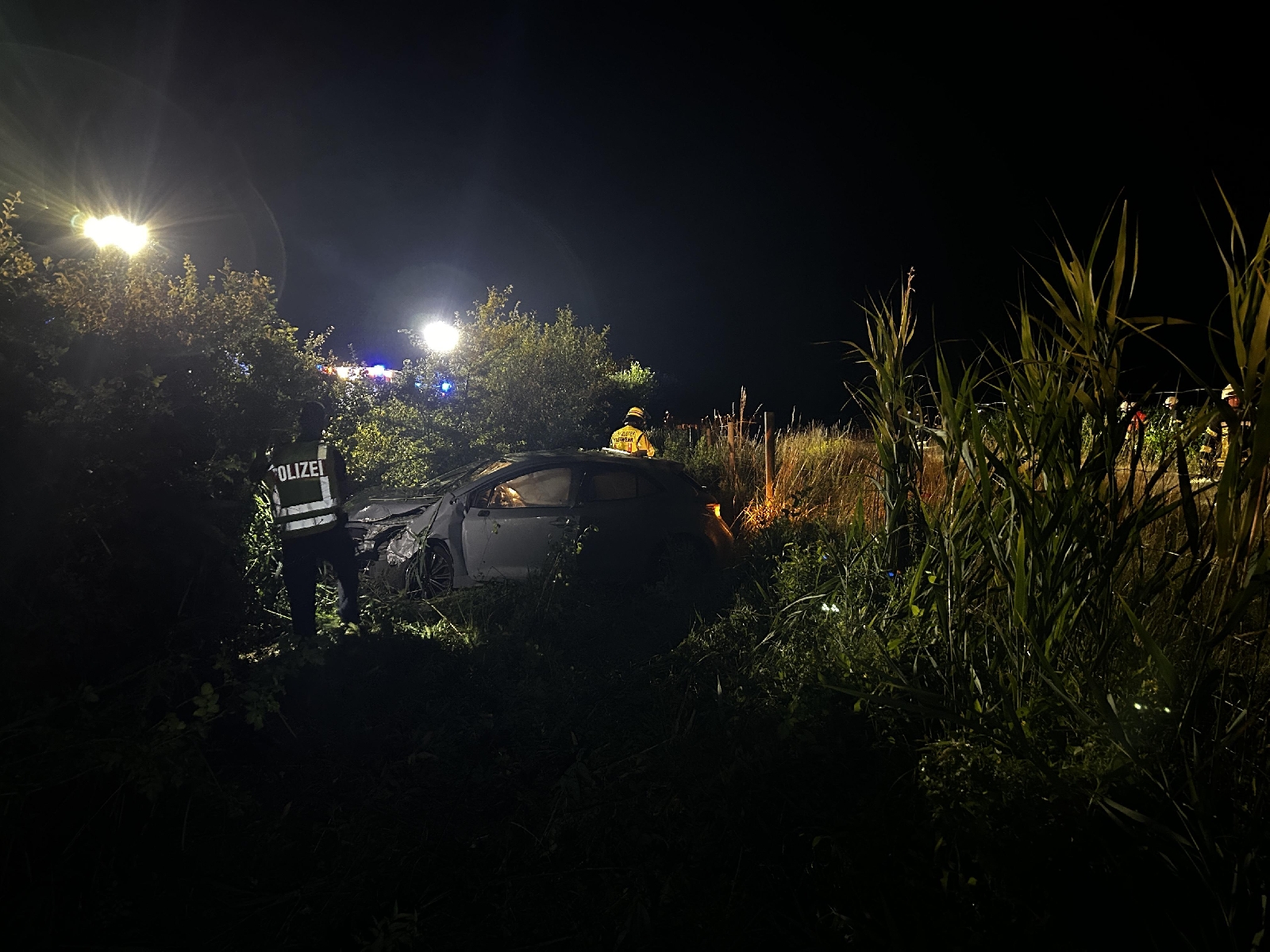 Die Rettungswagenbesatzung konnte keine Personen im Unfallfahrzeug feststellen, woraufhin die Feuerwehren aus Elsdorf, Gyhum und Zeven zur Personensuche hinzualarmiert wurden.