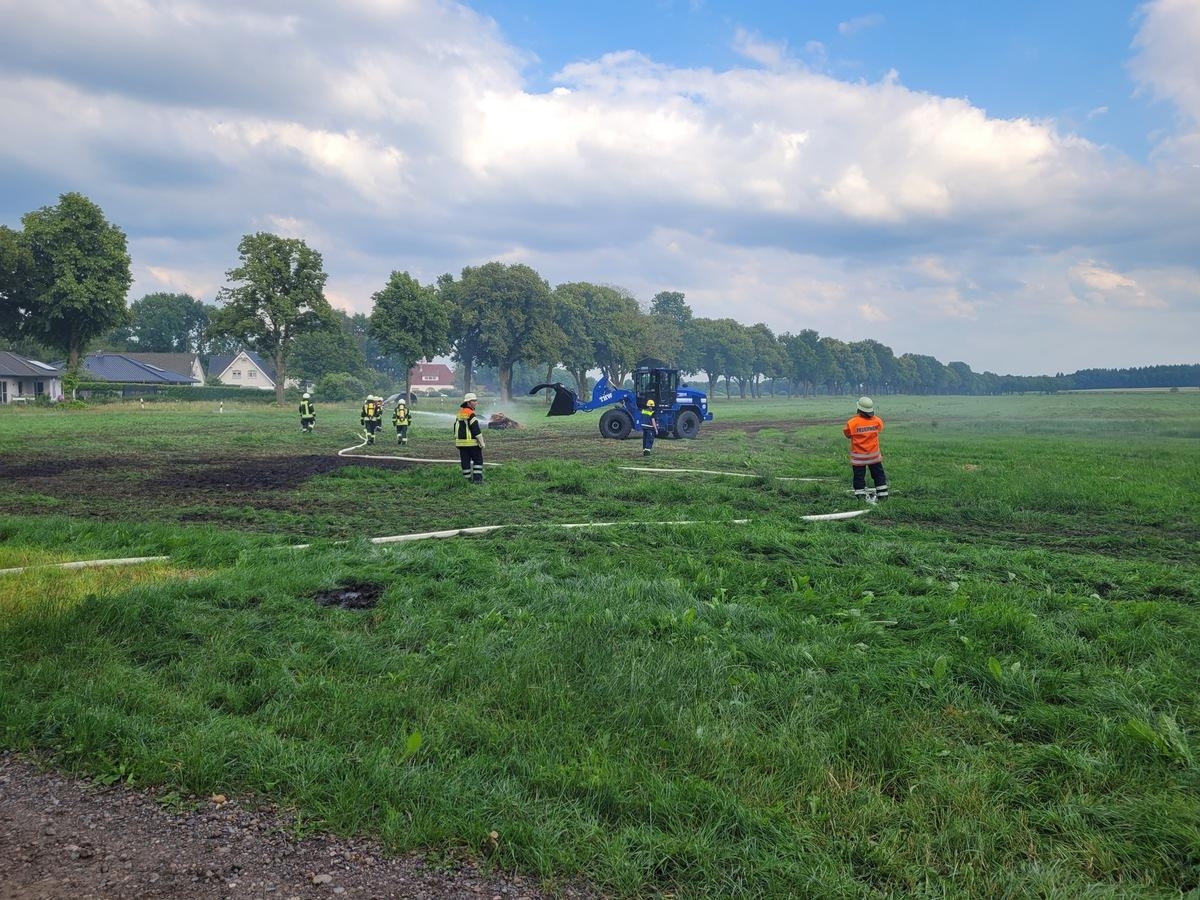 Doch nicht nur die Kühe mussten während der Löschmaßnahmen gerettet werden. Direkt an dem Strohlager waren mehrere Bienenstöcke aufgebaut. Diese wurden auf ein angrenzendes Feld verbracht, damit für sie und die Einsatzkräfte keine Gefahr mehr bestand.
