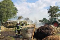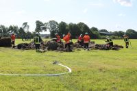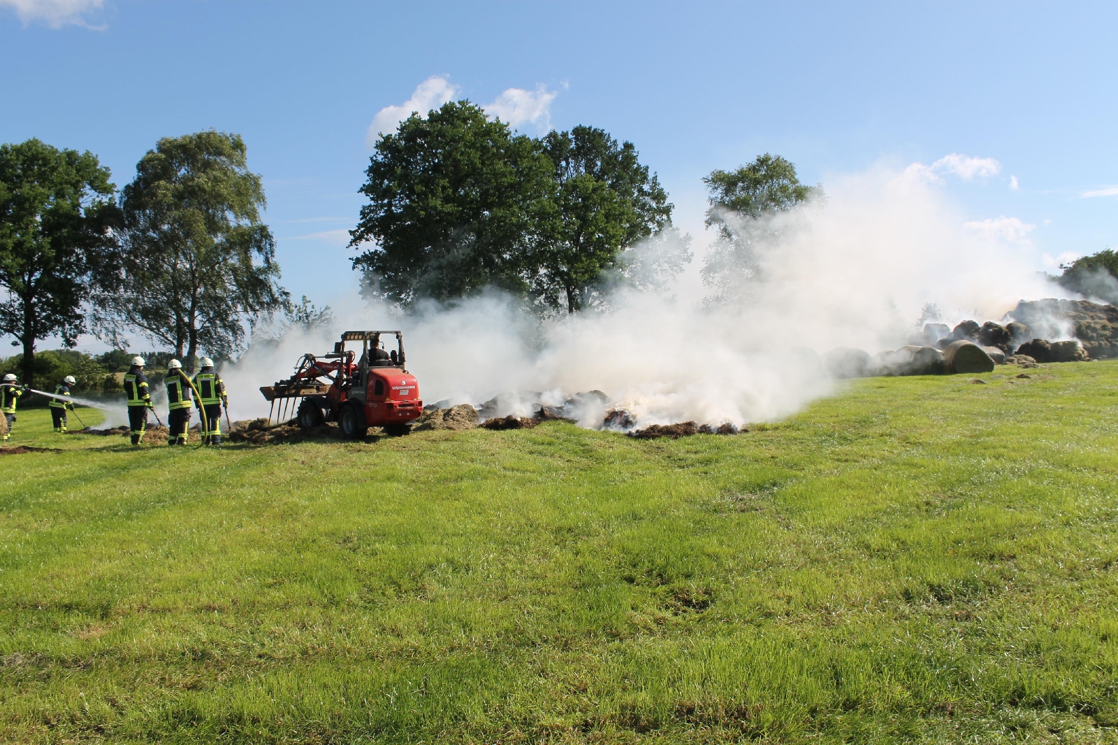 Mit Hilfe der Landwirte wurden die Heuballen auseinandergefahren und mit 9 C-Rohren sowie zwei Güllefässer abgelöscht.