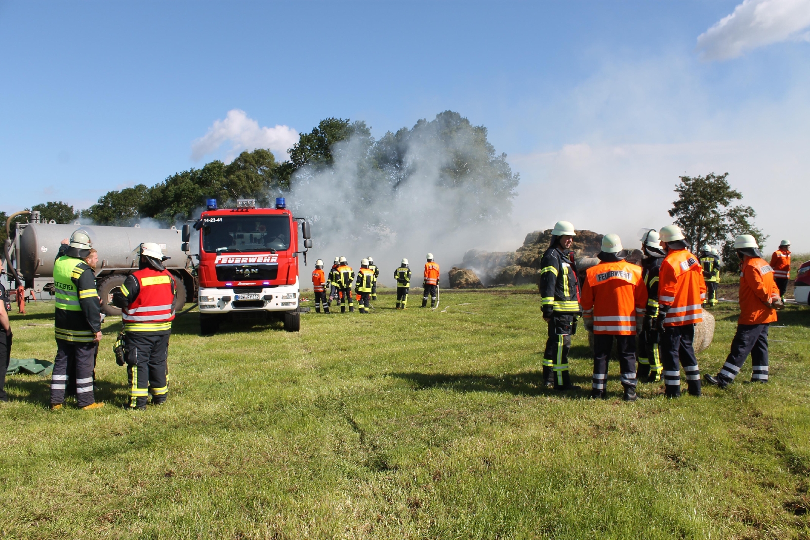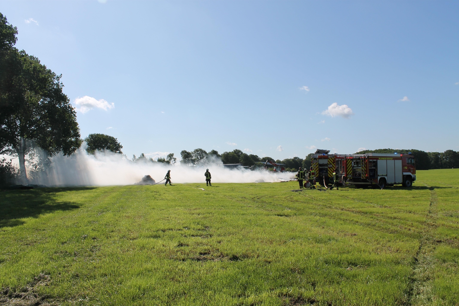 Ostereistedt. Am heutigen Sonntagvormittag kam es um 8:39 Uhr zu einem Heuballenbrand im Steinkampsweg in Ostereistedt. Als die Ortswehren Ostereistedt und Badenstedt am Einsatzort ankamen, brannten ca. 100 Heuballen, schnell wurde eine Stichworterhöhung vorgenommen, um weitere Kräfte nachzufordern. Insgesamt waren 9 Feuerwehren mit 82 Einsatzkräften im Einsatz.