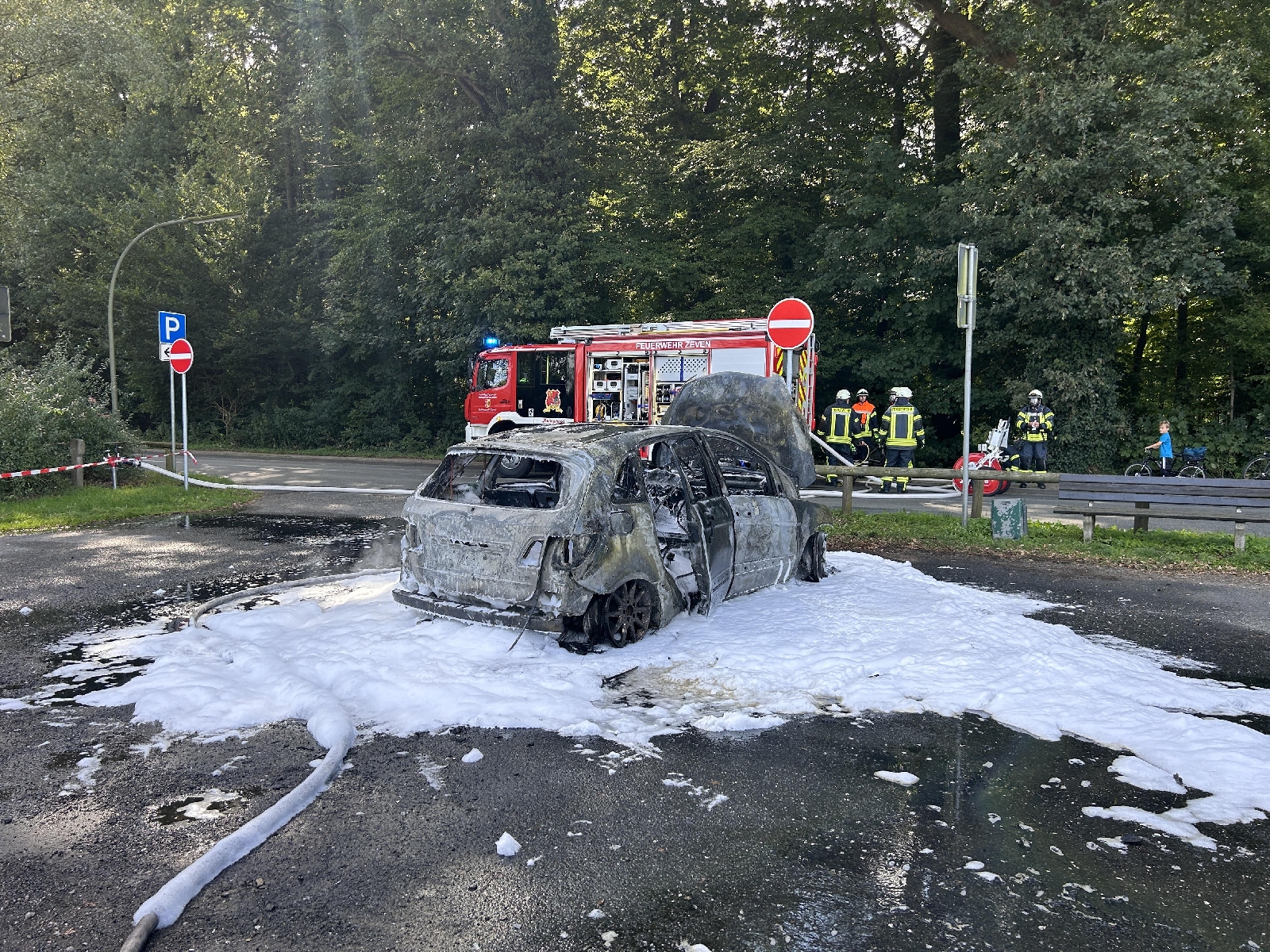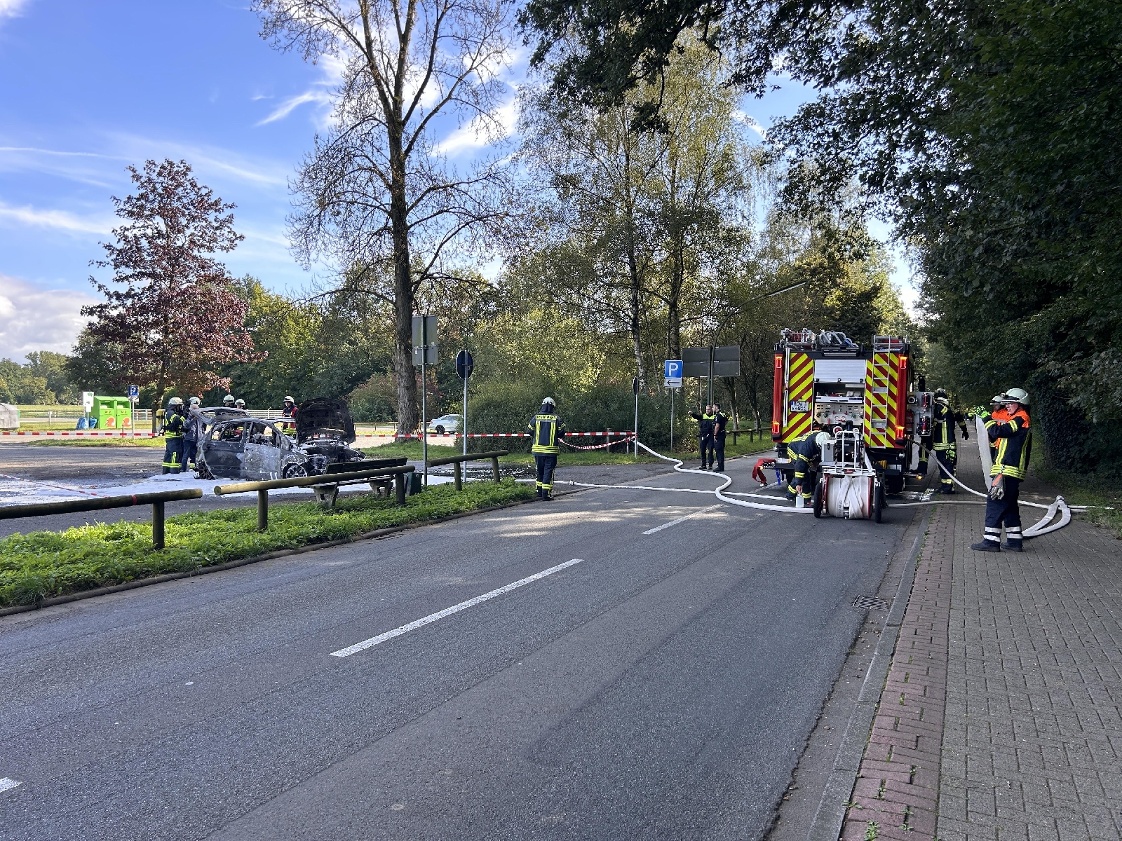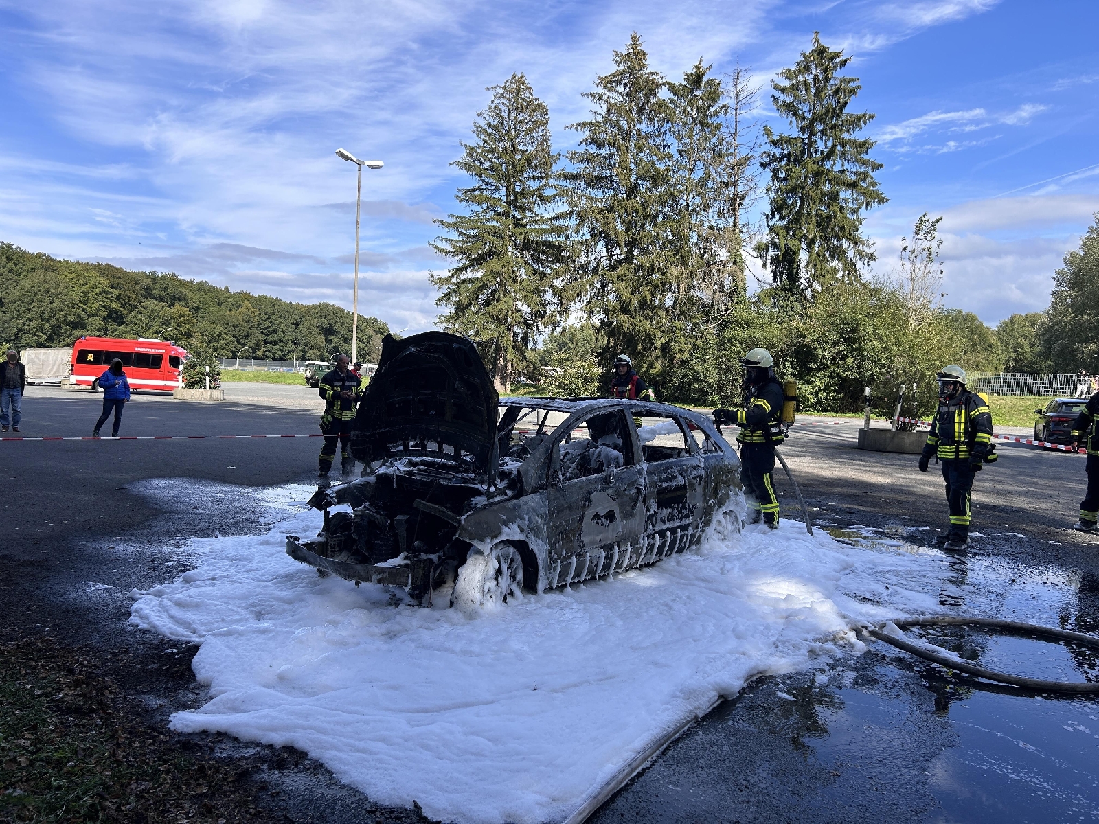 Um 14:19 Uhr am heutigen Sonntag, wurde die Feuerwehr Zeven und die Polizei zu einem PKW-Brand am Zevener Veranstaltungsgelände Ahe alarmiert. Noch im Entstehungsbrand konnten die danebenstehenden PKW von ihren Besitzern umgeparkt werden, doch durch die schnelle Brandausbreitung konnte die Feuerwehr den direkt betroffenen PKW nicht retten. Dieser stand bei Ankunft der Einsatzkräfte bereits in Vollbrand. Der Mercedes wurde bei dem Feuer vollständig zerstört. Die Feuerwehr Zeven hatte den Brand schnell unter Kontrolle und konnte nach Abschluss aller Maßnahmen die Einsatzstelle bereits nach circa 70 Minuten wieder verlassen.