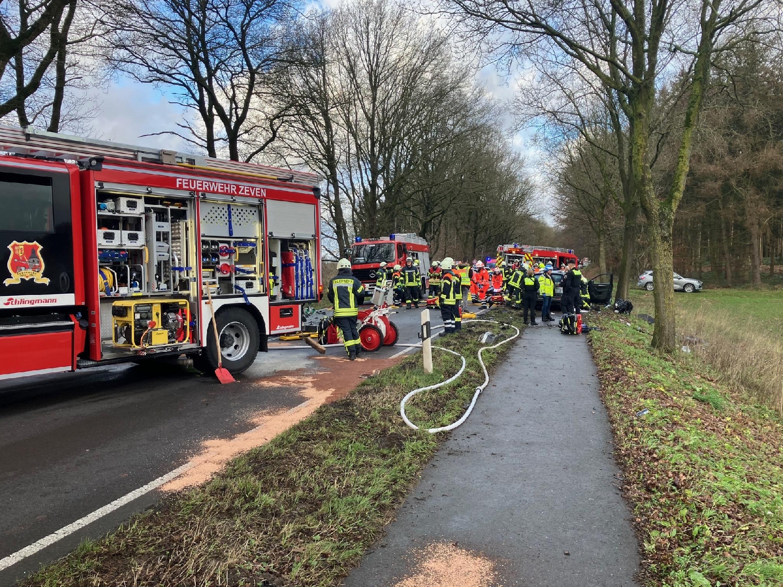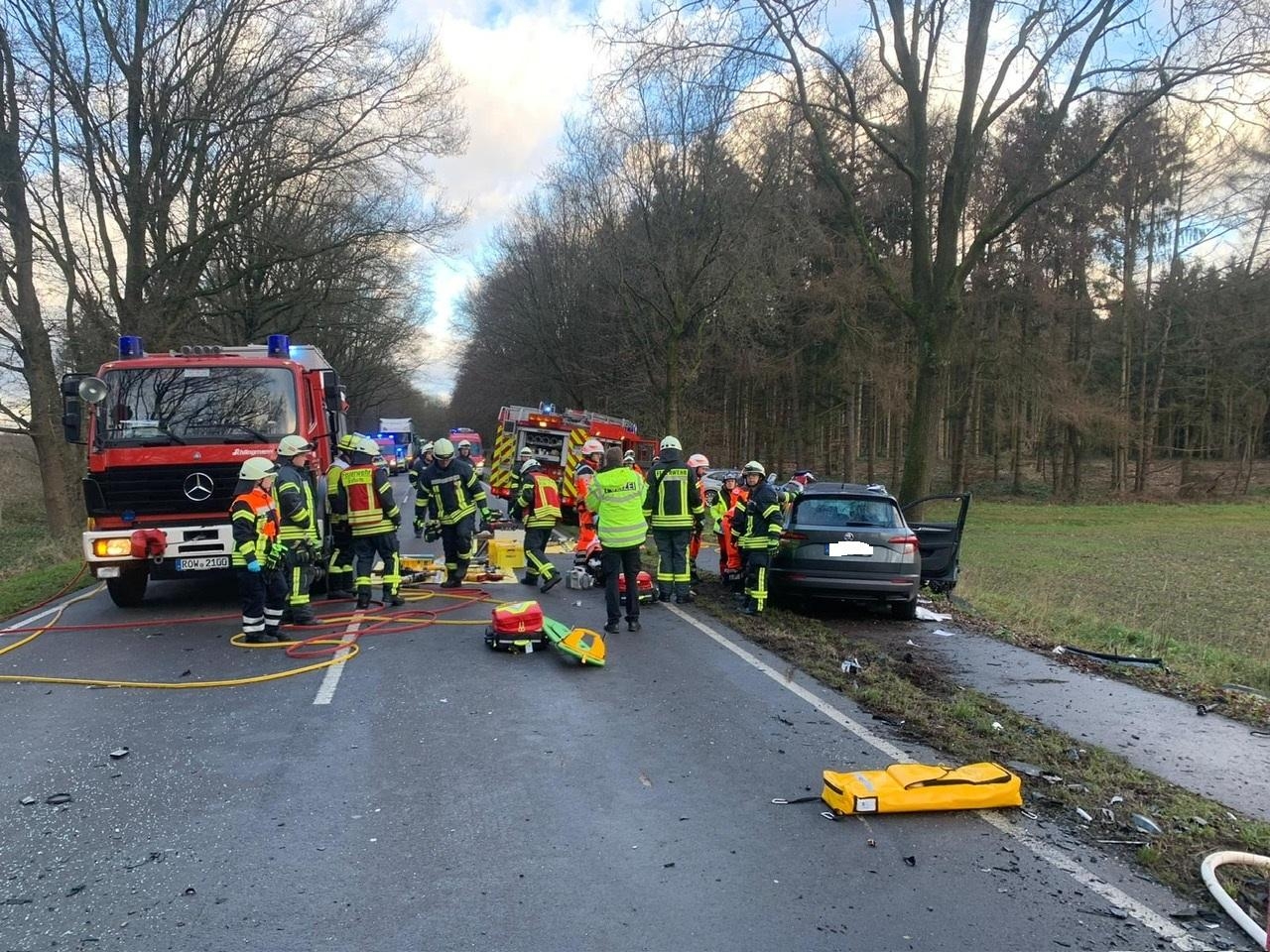 Der Organisatorische Leiter Rettungsdienst kam zufällig an der Unfallstelle vorbei und informierte die Leitstelle für Feuerwehr und Rettungsdienst. Diese alarmierte daraufhin die Feuerwehren aus Zeven, Gyhum und Sottrum sowie vier Rettungswagen, zwei Notarzteinsatzfahrzeuge, zwei Rettungshubschrauber aus Bremen und die Polizei.