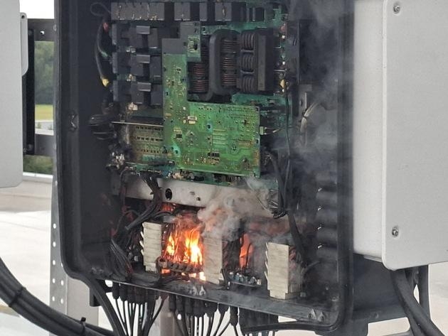 Feuer aus Nachkontrolle, explodierte PV Anlage