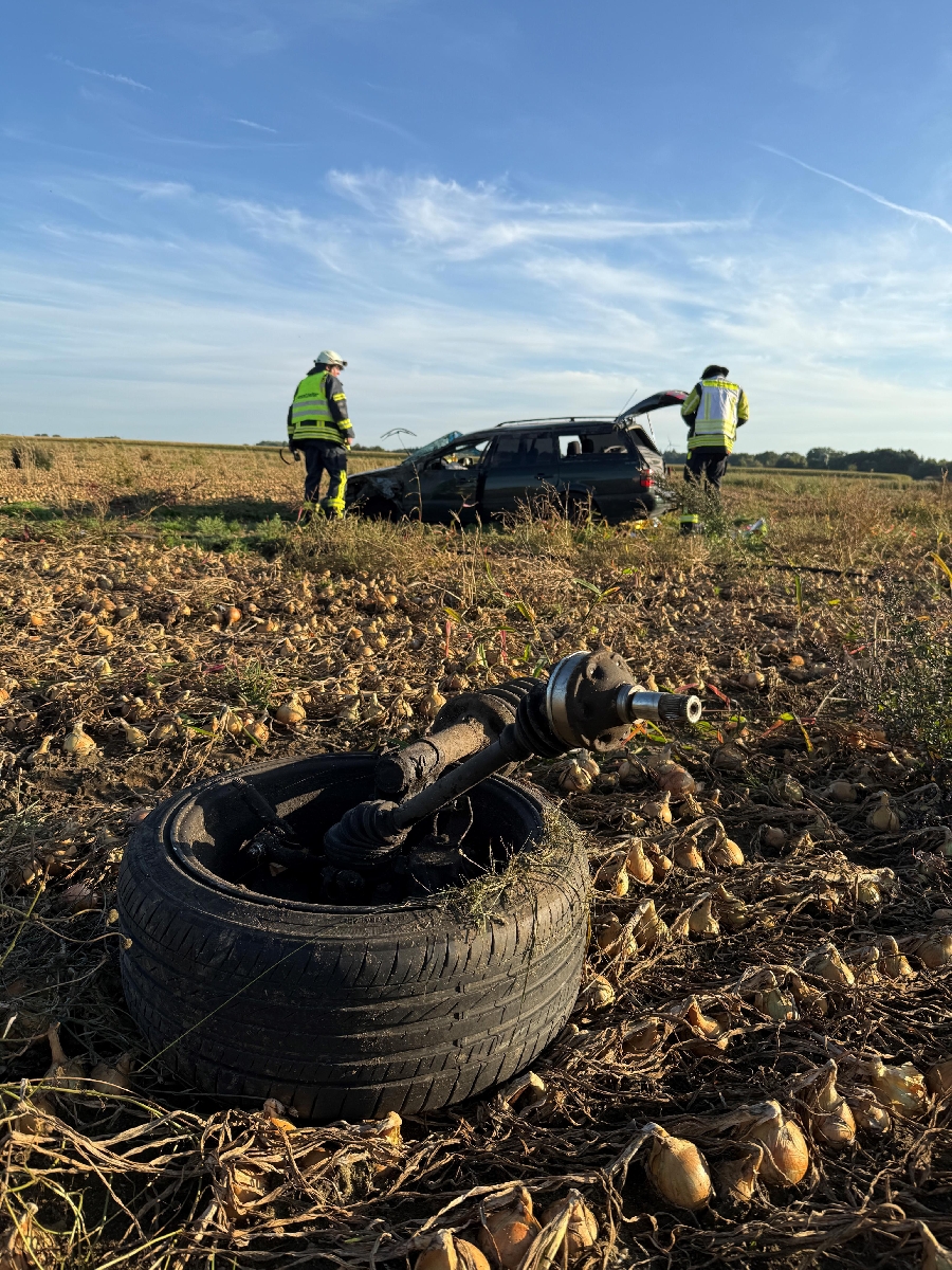 Am vergangenen Freitagabend gegen 17.30 Uhr wurden die freiwilligen Feuerwehren aus Steddorf, Boitzen, Heeslingen, Ahlerstedt,Zeven und Wangersen zu einem Verkehrsunfall alarmiert. Auf der Landstraße zwischen Steddorf und Wangersen kam der Fahrer eines PKWs aus ungeklärter Ursache von der Fahrbahn ab und landete nach mehrfachem Überschlagen auf einem Acker. Dabei zerstörte das Fahrzeug einen Strommast und verlor einige Bauteile. Im Auto befanden sich noch drei Mitfahrerinnen.
