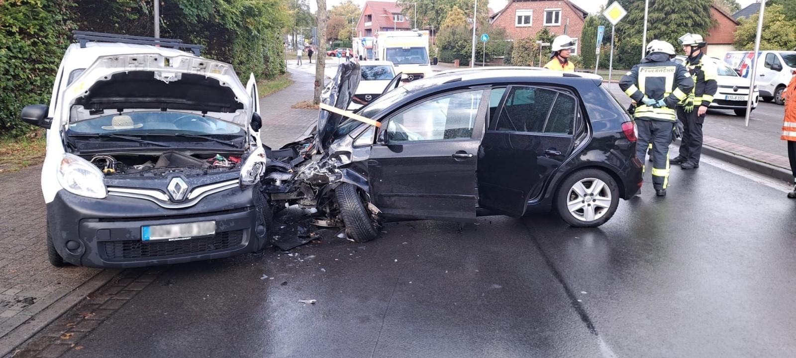 In Folge eines Verkehrsunfalls wurde eine Person in ihrem Fahrzeug eingeschlossen. Außerdem gab es noch zwei weitere beteiligte Personen, die ihr Fahrzeug selbstständig verlassen konnten.