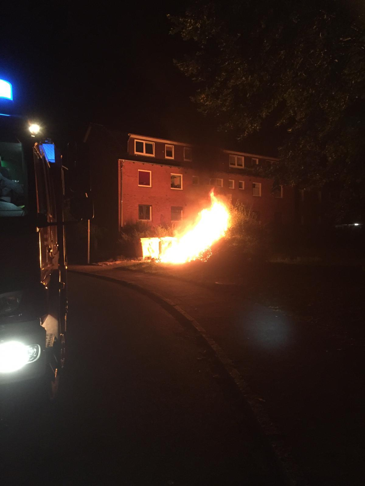 Zeven(tw) Die Ortsfeuerwehr Zeven wurde am 25.07 um 01:33 Uhr zu einer brennenden Mülltonne in die Berliner alarmiert. Bei Eintreffen der ersten Kräfte brannten mehrere 1000l Müllcontainer aus Kunststoff. Brandbekämpfung unter Atemschutz eingeleitet, anschließend die Einsatzstelle eingeschäumt.Nach kurzer Zeit konnte Feuer aus an die Leitstelle gemeldet werden