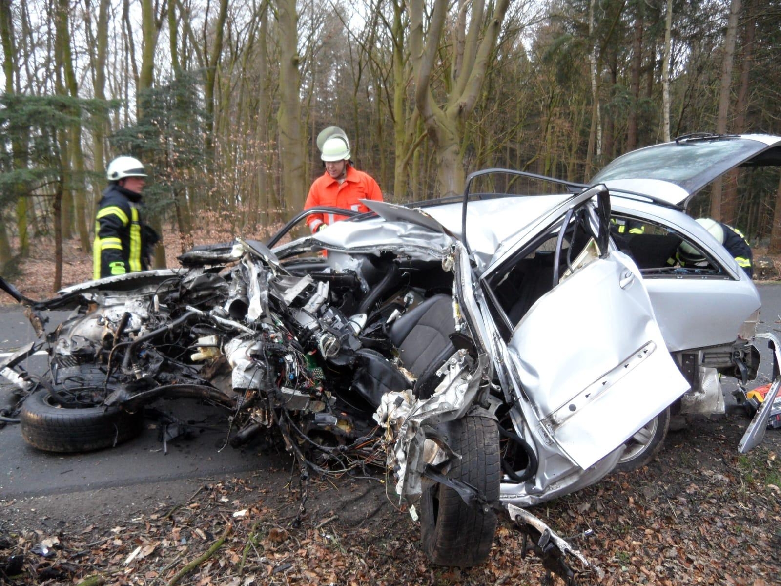 Der Aufprall des Fahrzeuges war so stark, dass der Fußraum des PKWs sehr stark zusammengedrückt wurde. Aufgrund der Wucht durch den Zusammenstoß wurde das Auto in den Straßenseitenraum geschleudert, was die Bergung durch den weichen Waldboden erschwerte. Es gelang den Einsatzkräften jedoch das Fahrzeug soweit zu sichern, dass mit hydraulischem Spreizer und Rettungszylinder der Fußraum aufgedrückt werden und somit die verstorbene Person befreit werden konnte.