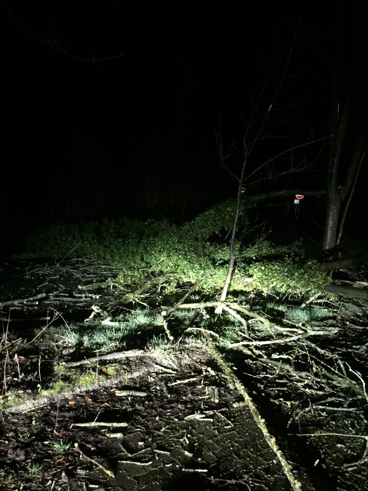 Eine dicke Pappel ist aufgrund des Sturmes umgeweht und hat die Straße Sonnenkamp komplett versperrt.sonstige Informationen
