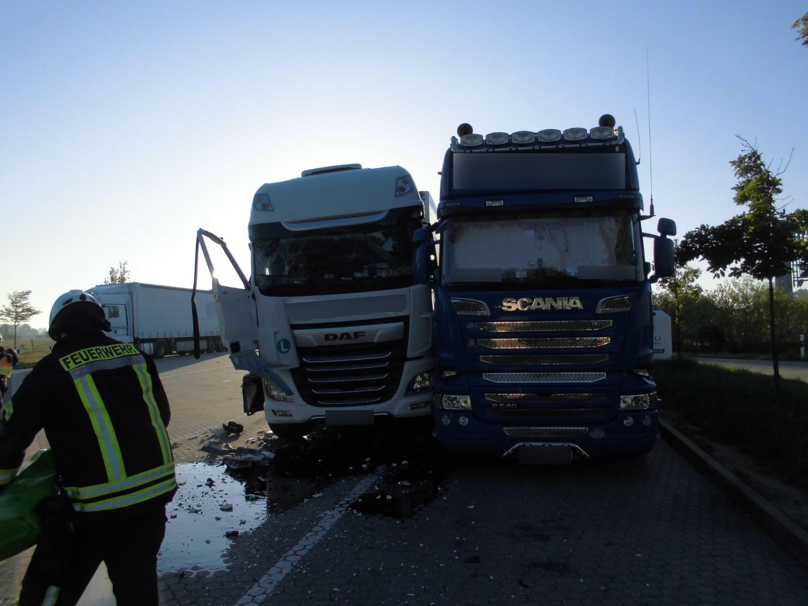 Am heutigen Morgen verunfallte ein 53-jähriger LKW-Fahrer kurz vor der Anschlussstelle Bockel, an der Hansaline in Richtung Bremen. Kurz nach 06:00 Uhr verlor dieser beim Befahren des Autobahnparkplatzes Glindbusch die Kontrolle über seinen Sattelzug und krachte in einen dort geparkten LKW. Dieser wurde durch die Wucht des Aufpralls gegen einen danebenstehenden 40-Tonner geschoben.