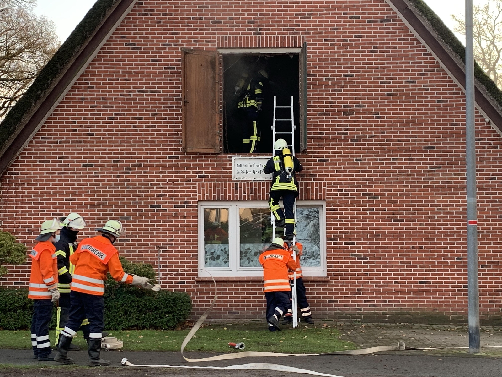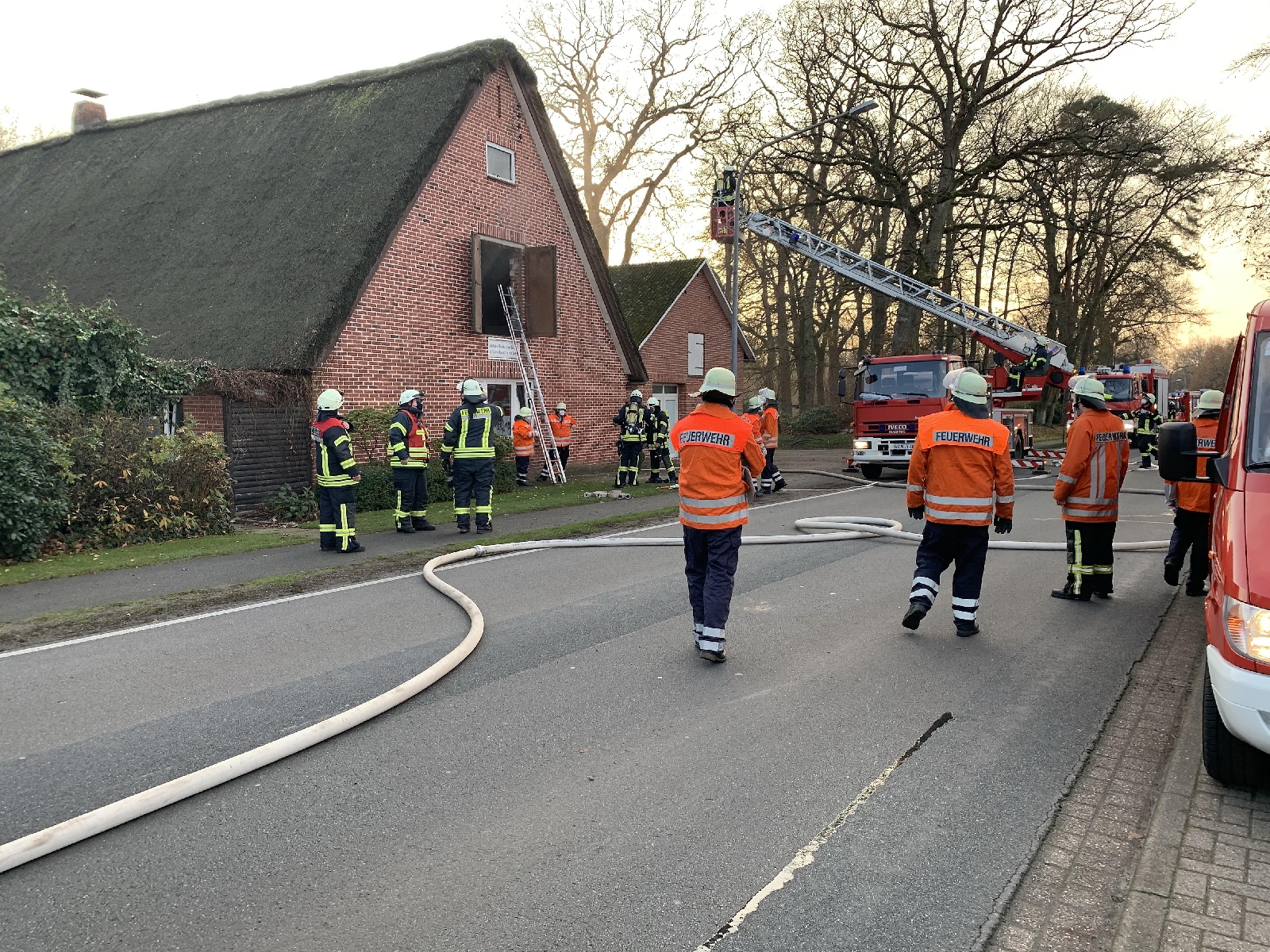 Bei Eintreffen der Feuerwehren Weertzen, Heeslingen, Zeven, Wiersdorf und Rüspel-Volkensen-Nindorf drang bereits dichter Rauch aus dem Gebäude. Hier mussten die Einsatzkräfte schnell handeln, da es sich um ein Reetdachhaus handelte. Ein Trupp unter Atemschutz ging umgehend ins Gebäude hinein und löschte den Brand mit einem C-Rohr. Die Feuerwehrleute mussten Teile der Decke entfernen, um an versteckte Glutnester zu kommen. Mit der Zevener Drehleiter wurde das Dach mittels Wärmebildkamera kontrolliert. Parallel kontrollierten Atemschutztrupps den Dachboden. Ein Druckbelüfter sorgte dafür, dass das Gebäude rauchfrei wurde. Glücklicherweise ist niemand bei dem Einsatz verletzt zu Schaden gekommen. Der bereitgestellte Rettungswagen und Notarzt konnten unverrichteter Dinge wieder abrücken.