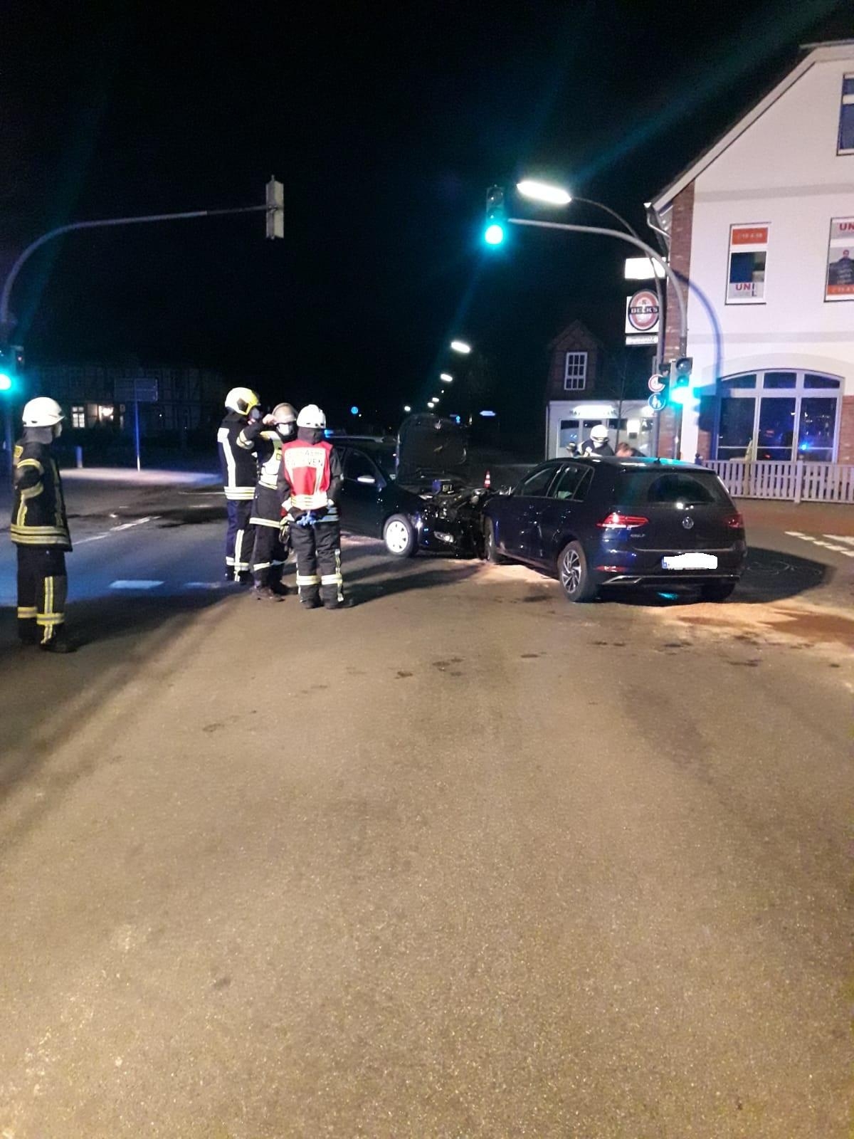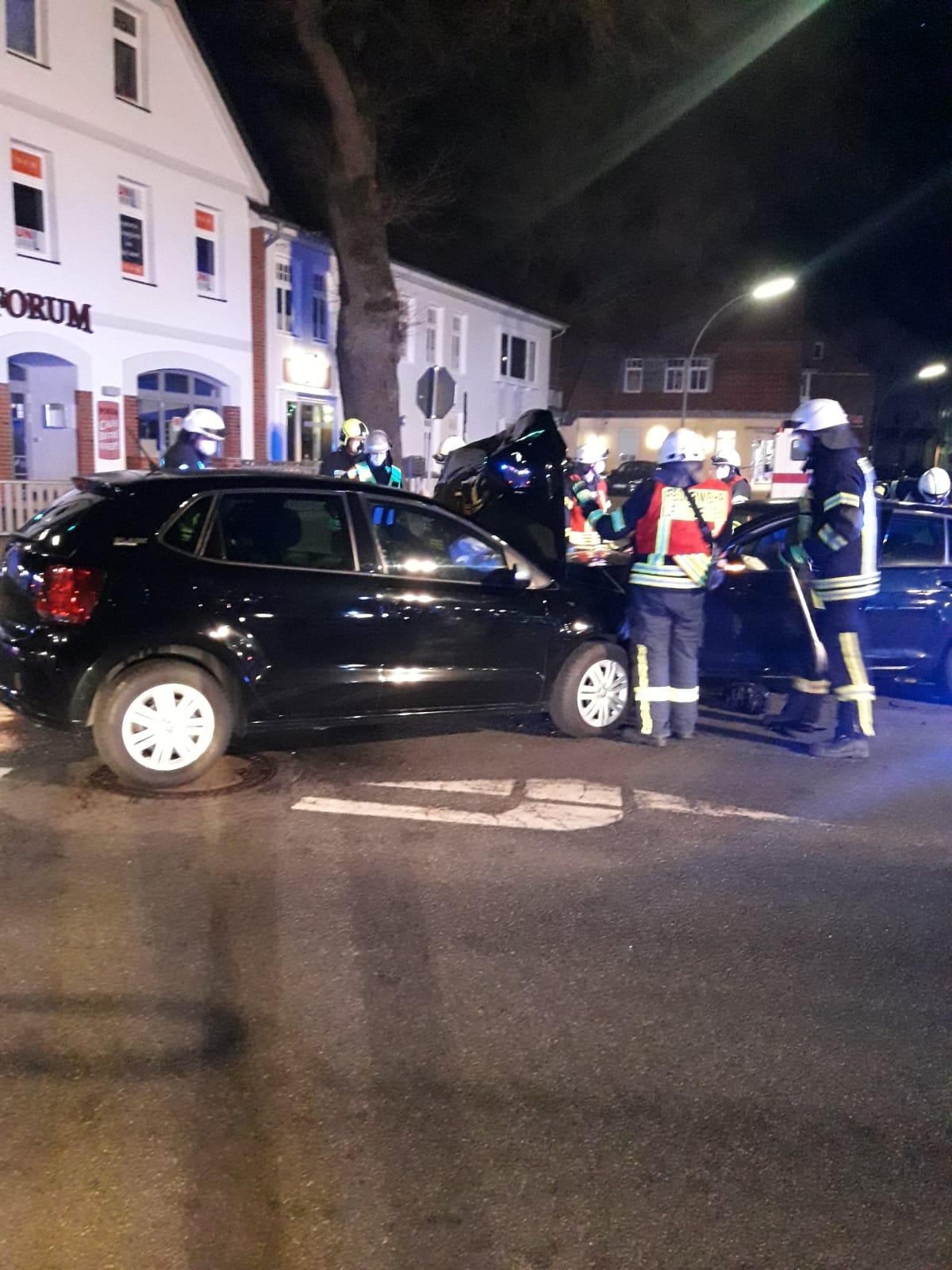 Zeven(tw) Einsatz für die Feuerwehr Zeven am 27.02.21 um 20:22 Uhr, laut erster Meldung auf den digitalen Meldeempfängern Hilfeleistung nach VU. Bei Ausfahrt des 1. Fahrzeuges kamn seitens der Leitstelle die Info ein Unfallfahrzeug solle anfangen zu brennen. In der Bäckerstraße Ecke Lindenstraße hatte ein Fahrzeug dem anderen die Vorfahrt genommen, dabei stießen beide Fahrzeuge frontal zusammen. Die Feuerwehr Zeven löschte die qualmende Fahrzeugbatterie von dem einem Unfallfahrzeug und streute auslaufende Betriebsstoffe ab.