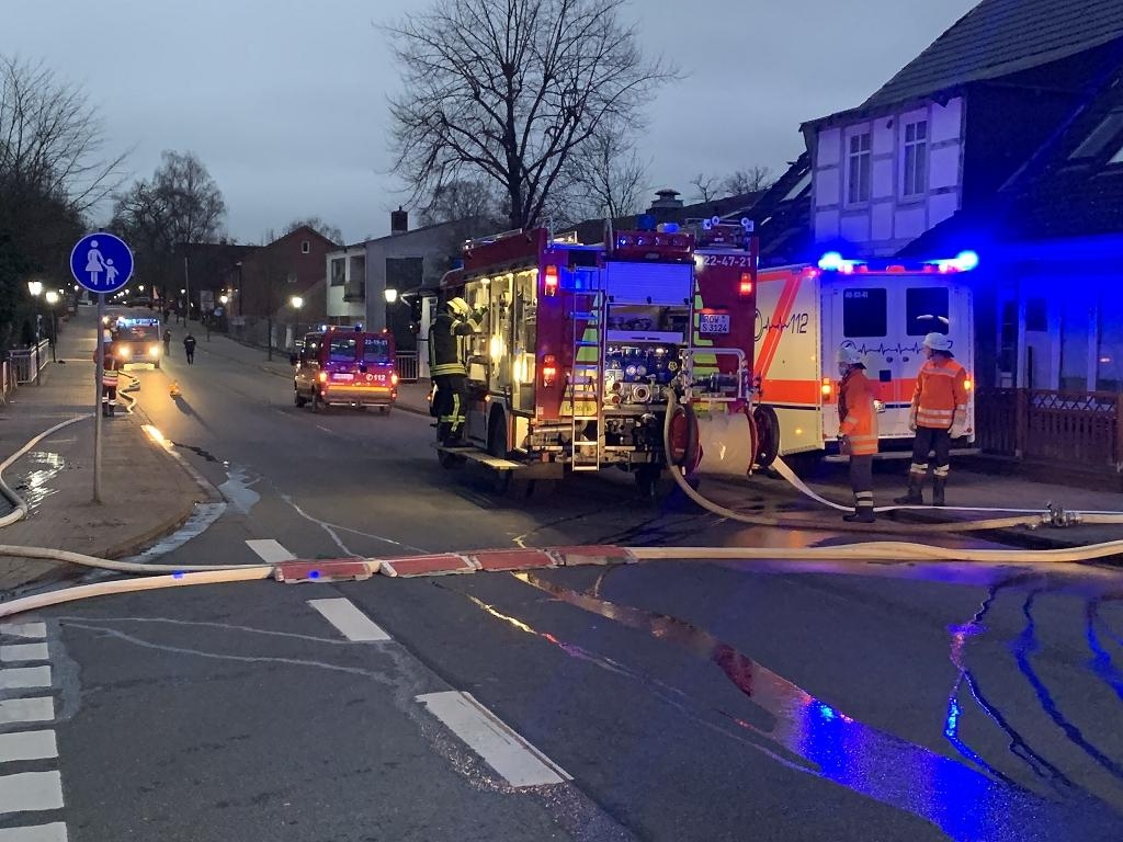 04.03.2021 Sittensen (as). Ein Küchenbrand ereignete sich am Donnerstagabend gegen 17.30 Uhr in einer Wohnung im ersten Obergeschoss in der Straße „Am Markt“. Gemeldet war zunächst eine unklare Rauchentwicklung. Auf der Anfahrt zum Feuerwehrhaus war bereits erkennbar, dass dichter Rauch aus dem Dachstuhl drang. Noch vor dem Eintreffen der ersten Fahrzeuge der Wehren Sittensen und Tiste wurde das Alarmstichwort erhöht. Und die Wehren Klein Meckelsen, Hamersen und Zeven mit der Drehleiter rückten ebenfalls an.