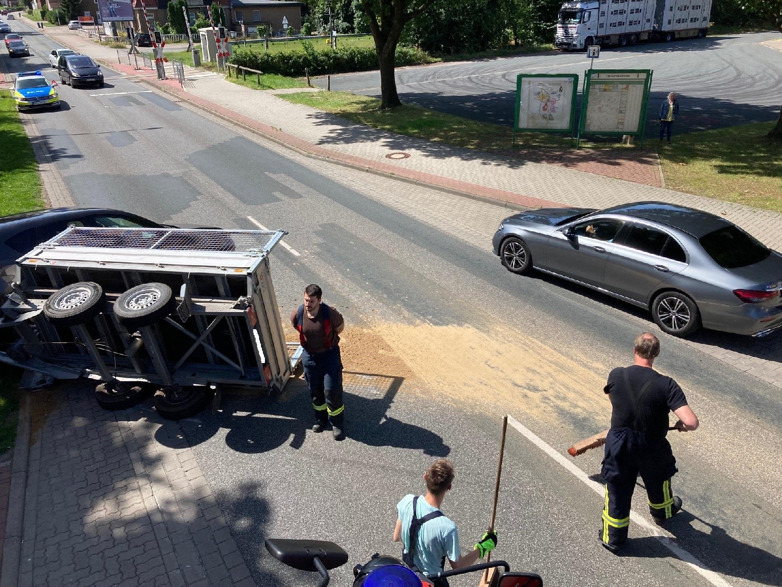 Zeven(tw) Die Ortsfeuerwehr Zeven wurde heute um 11.13 Uhr zu einer Straßenverunreinigung alarmiert. Auf der Kivinanstraße in Höhe des Finanzamtes ist ein PKW Anhänger umgekippt. Durch die Einsatzkräfte wurde auslaufendes Hydrauliköl aufgefangen und der Sand von der Straße gefegt.sonstige Informationen