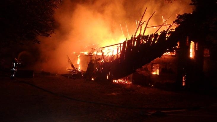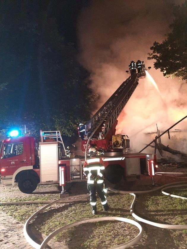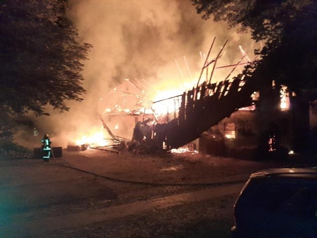 Die Rettungskräfte der Feuerwehren aus Sottrum, Clüversborstel, Hassendorf, Reeßum und Stuckenborstel wurden mit der Meldung "Feuer, groß, brennt landwirtschaftliches Gebäude, Sottrum, Brunnenweg" um 2:41 Uhr in der Nacht auf den Montag geweckt und alarmiert.