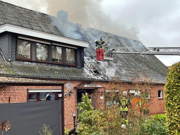 Ein Einfamilienhaus in Elsdorf, in der "Lange Straße" geriet aus ungeklärter Ursache am Mittwochmittag gegen 12.30 Uhr in Brand. Noch auf der Anfahrt zum Feuerwehrhaus musste das Alarmstichwort auf "Feuer 4" erhöht werden.