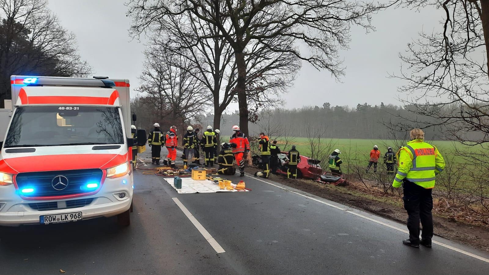 Die Feuerwehr Zeven entfernte die Türen auf der linken Fahrzeugseite sowie die linke B-Säule, damit die schonende Rettung über ein Spinboard möglich wurde. Die Feuerwehr Brauel stellte den Brandschutz an der Einsatzstelle sicher.
