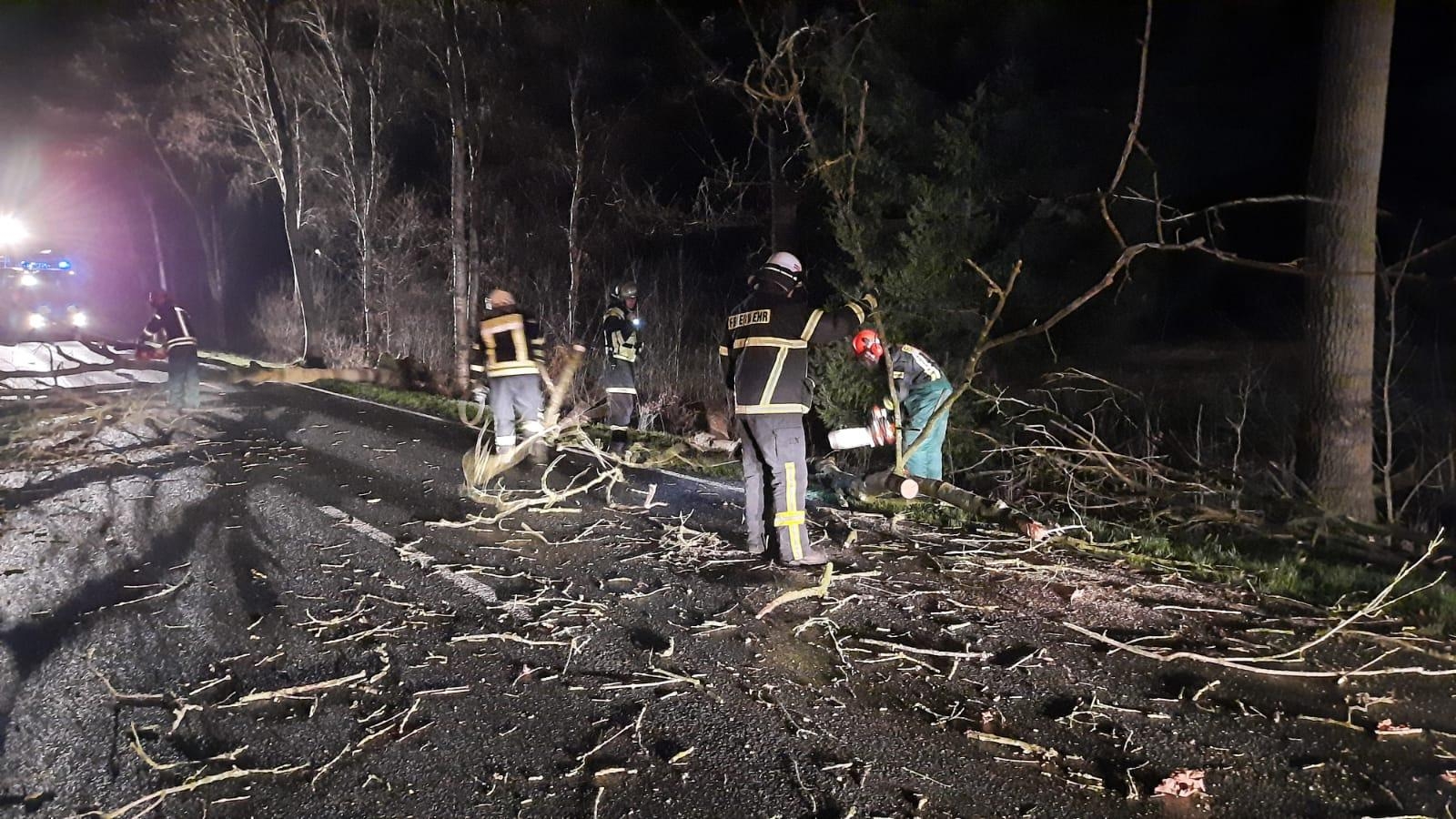 Zeven(tw) Die Ortsfeuerwehr Zeven wurde am 01.02.22 um 22:44 Uhr zu einer technschen Hilfeleistung auf die L 122 Zeven>Bademühlen alarmiert. Aufgrund des Sturmes ist ein Baum umgestfallen. Der Baum konnte nicht gefahrlos beseitigt werden,daher wurde der Baum mittels Winde vom Rüstwagen umgezogen. Anschließend konnten beide Bäume zersägt werden und die Straße zügig wieder frei geräumt werden.sonstige Informationen
