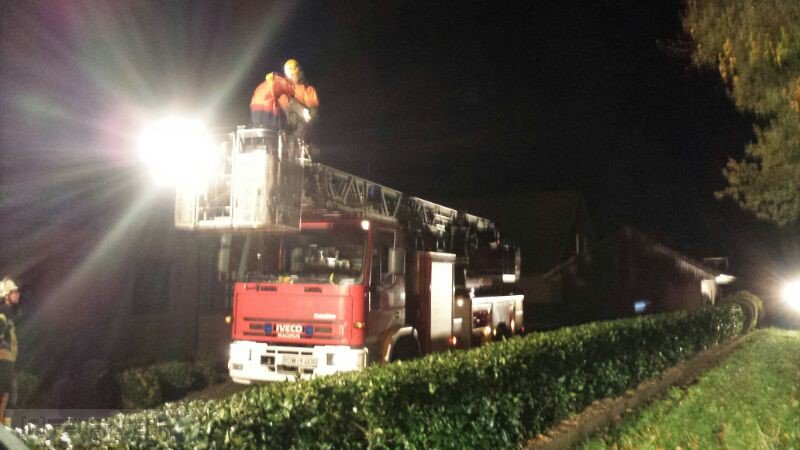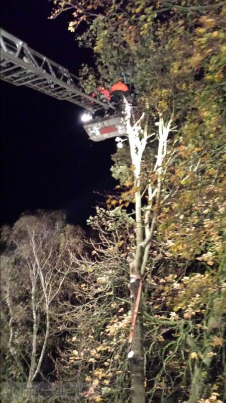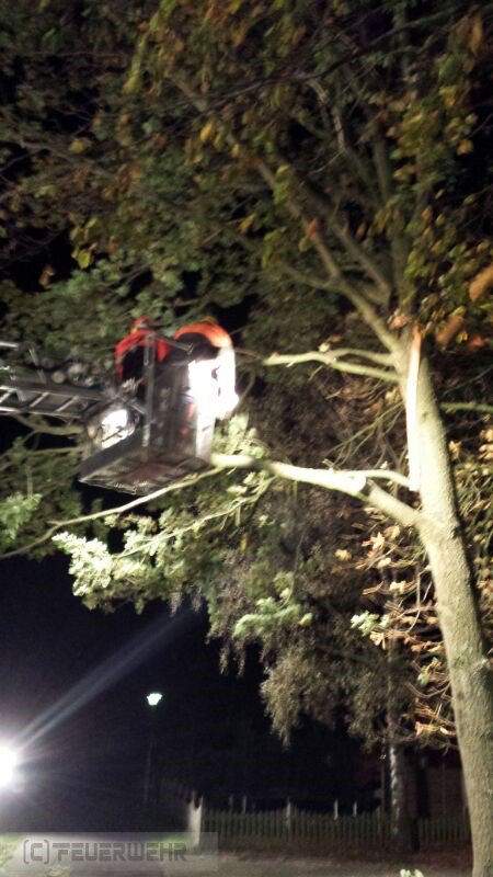 Selsingen(tw) Aufgrund des heftigen Sturmes ist ein Baum in der Mitte gespalten worden und drohte nun in der Mitte auseinander zu fallen. Der Baum wurde Stück für Stück von Kräften der Ortsfeuerwehr Zeven heruntergesägt,sodaß der baum nicht mehr auf das Wohnhaus fallen konnte.