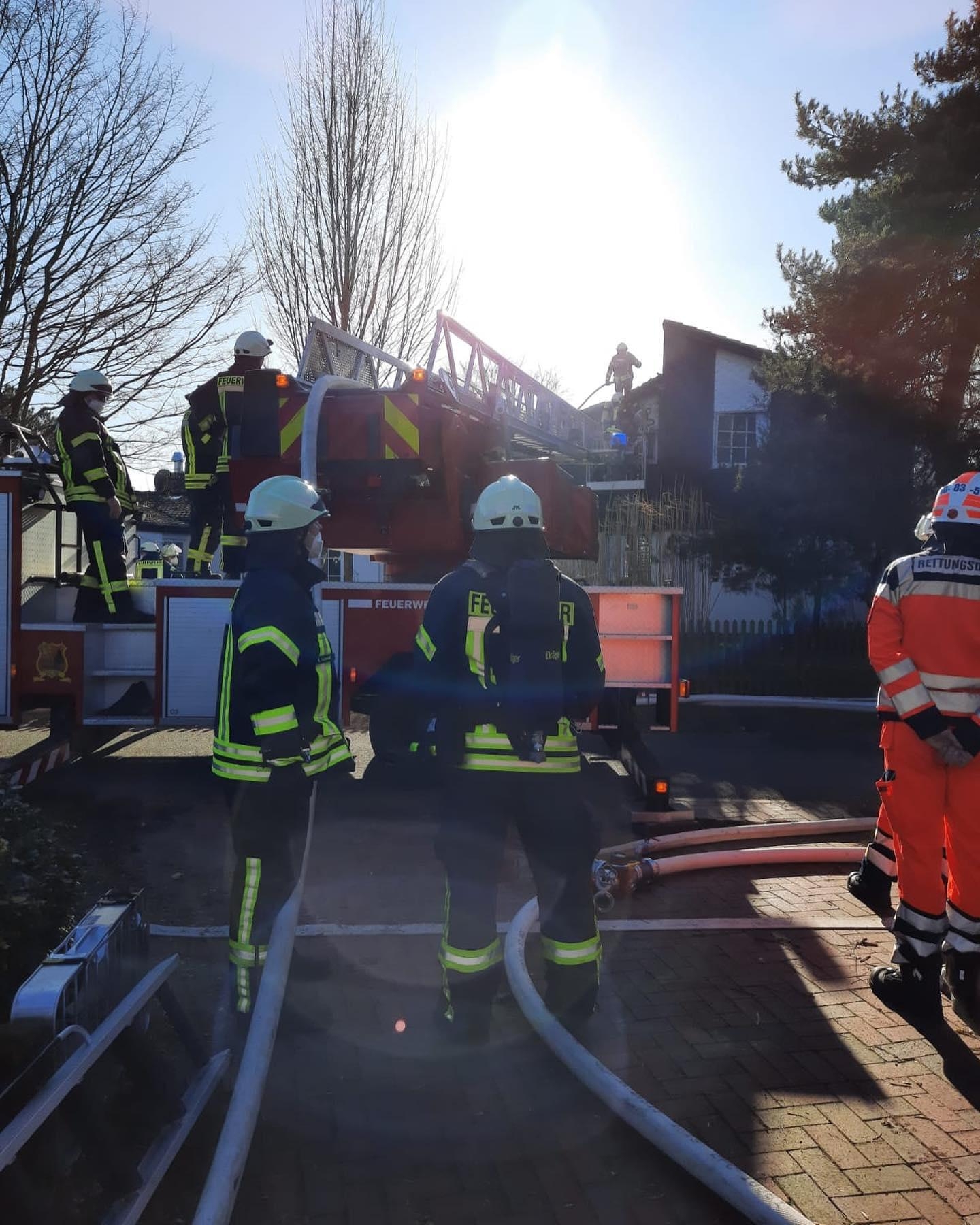 DrehleitereinsatzAm Sonntagnachmittag wurde die Zevener Drehleiter nach Tarmstedt beordert, um die Freiwillige Feuerwehr Tarmstedt bei einem Brandeinsatz zu unterstützen.