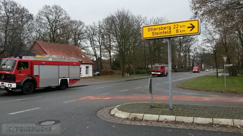 Zeven(tw) Die Ortsfeuerwehren aus Zeven,Brüttendorf und Oldendorf wurden am 01.12.13 um 12:02 Uhr von der Rettungsleitstelle in Zeven zu einer größeren Straßenverunreinigung auf der B 71 im Bereich Brüttendorf alarmiert. Ein Traktorgespann eines Zirkus hatte Hydrauliköl verloren.Die Bundesstraße im Bereich Zeven war zum Glück nicht betroffen,so muste lediglich im Bereich Brüttendorf und die Landesstraße in Richtung Steinfeld abgestreut werden.