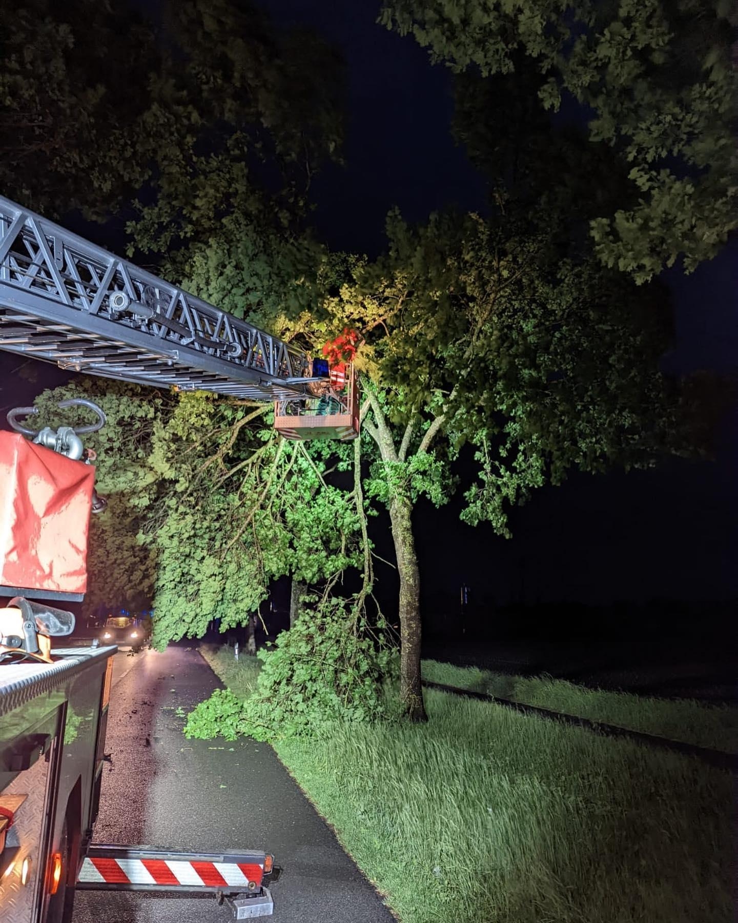 Am Freitagabend um kurz vor 22 Uhr ging ein Einsatz für die Zevener Drehleiter ein. Auf der Kreisstraße 110 zwischen Ohrel und Anderlingen drohten Äste auf die Fahrbahn zu stürzen und stellten dadurch eine Gefahr dar.