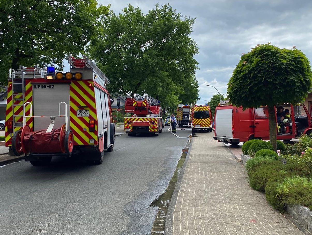 Fahrzeugaufgebot   ELW  LF 20/16  LF 16/12  DLK 23/12 (alt)  RTW2  Zeven  stellv.GemBM Zeven mit PKW  MTW  KdoW KBM