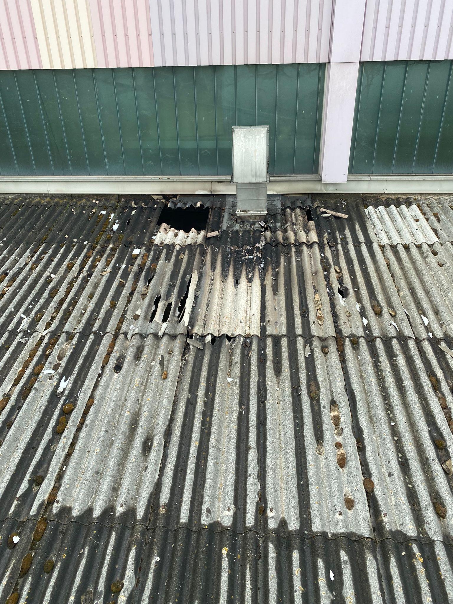 Über die Drehleiter erfolgte ein Außenangriff, da sich das Feuer bereits durch die Dachhaut gearbeitet.