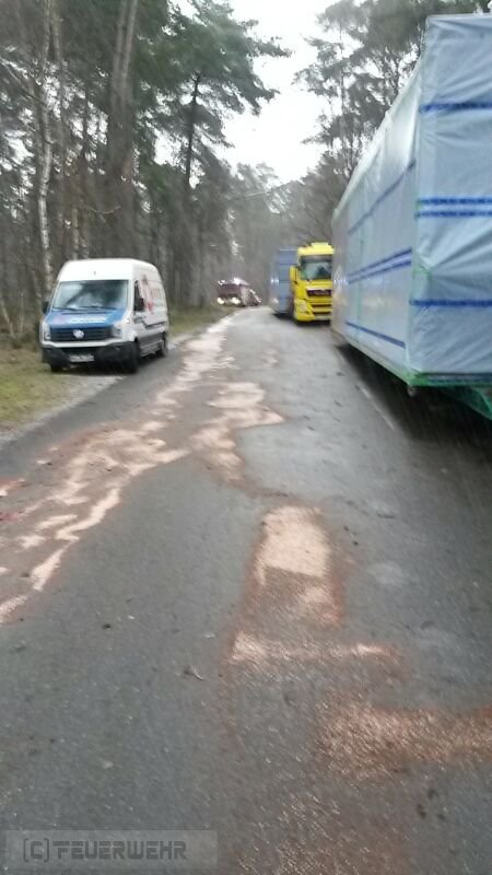 Brauel(tw) Alarm für die Ortsfeuerwehren Zeven und Brauel,auf der Zufahrtsstraße zu einer Baustelle an der Bremervörder Straße,hatte ein LKW aufgrund eines technischen defektes an der Hydraulikleitung auf einer Länge von ca. 150 Metern ca. 100 Liter Hydrauliköl verloren. Die Fahrbahn wurde mittels Bindemittel abgestreut,die nachträgliche gründliche Reinigung wurde von einer Spezialfirma übernommen.