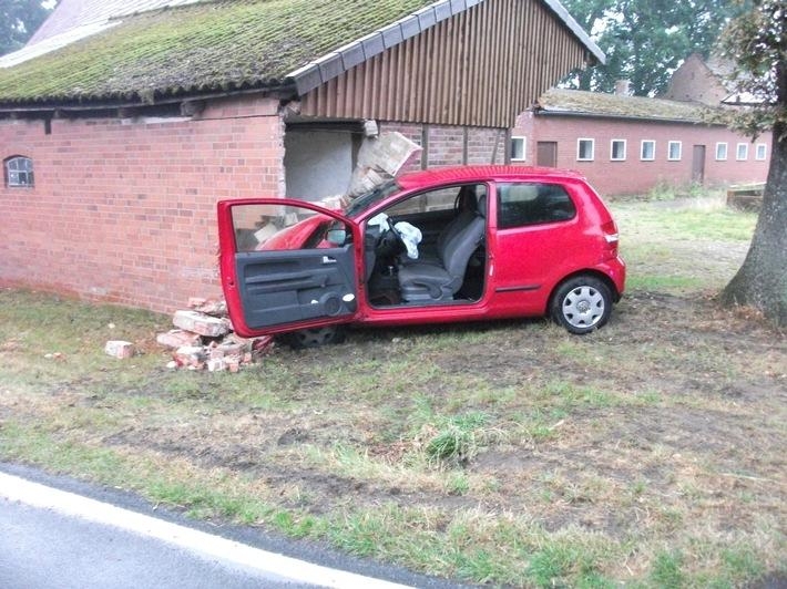 Um kurz nach 19 Uhr kam es am Sonntagabend in der Selsinger Straße in Rhade zu einem Unfall. Aus bislang ungeklärter Ursache kam ein Autofahrer ausgangs einer Kurve mit seinem Fahrzeug von der Fahrbahn ab. Anschließend prallte er in die Ecke einer anliegenden Scheune. Dabei verletzte er sich schwer. Die alarmierten Feuerwehren aus Rhade und Zeven befreiten ihn aus seinem deformierten Fahrzeug. Er wurde aber nicht eingeklemmt. Mit einem Rettungswagen und in Begleitung eines Notarztes wurde die verletzte Person in ein Krankenhaus transportiert. Die Polizei aus Bremervörde sicherte die Spuren und hat die Ermittlungen aufgenommen. Für die Dauer des Einsatzes wurde die Selsinger Straße voll gesperrt.