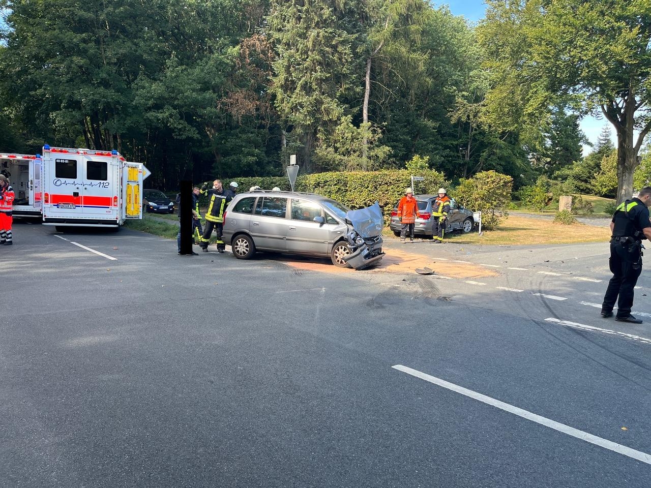 Die Insassen der beiden PKW wurden mit fünf Rettungswagen in umliegende Krankenhäuser transportiert. Auch ein Notarzt und der organisatorische Leiter Rettungsdienst waren vor Ort.