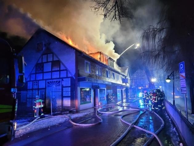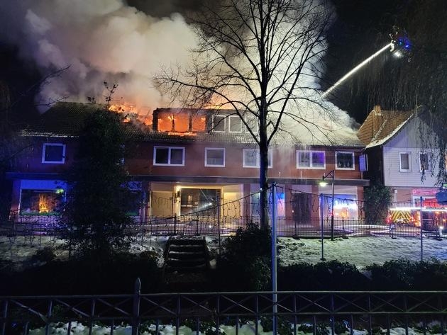 Auch die Drehleiter aus Zeven sowie der Gerätewagen-Atemschutz und weitere Atemschutzgeräteträger wurden nachalarmiert, um eine Brandausbreitung auf benachbarte Wohn- und Geschäftsgebäude zu verhindern.