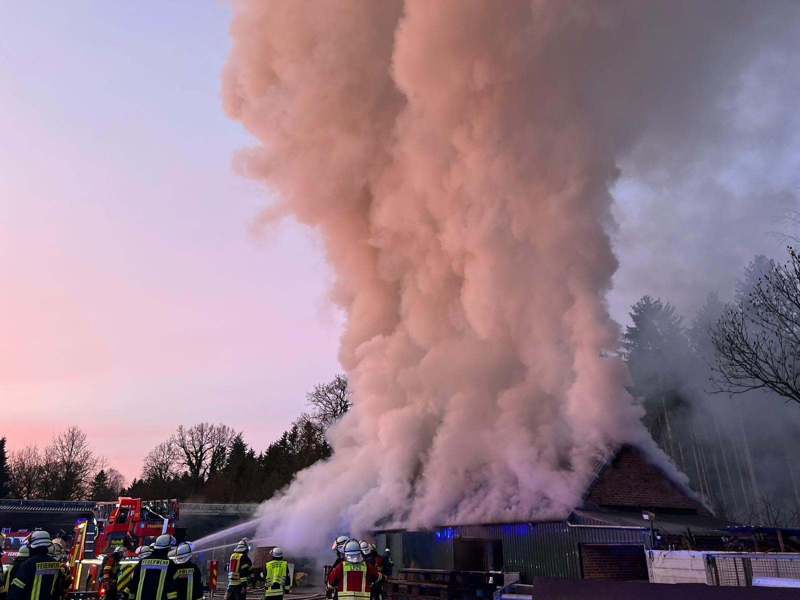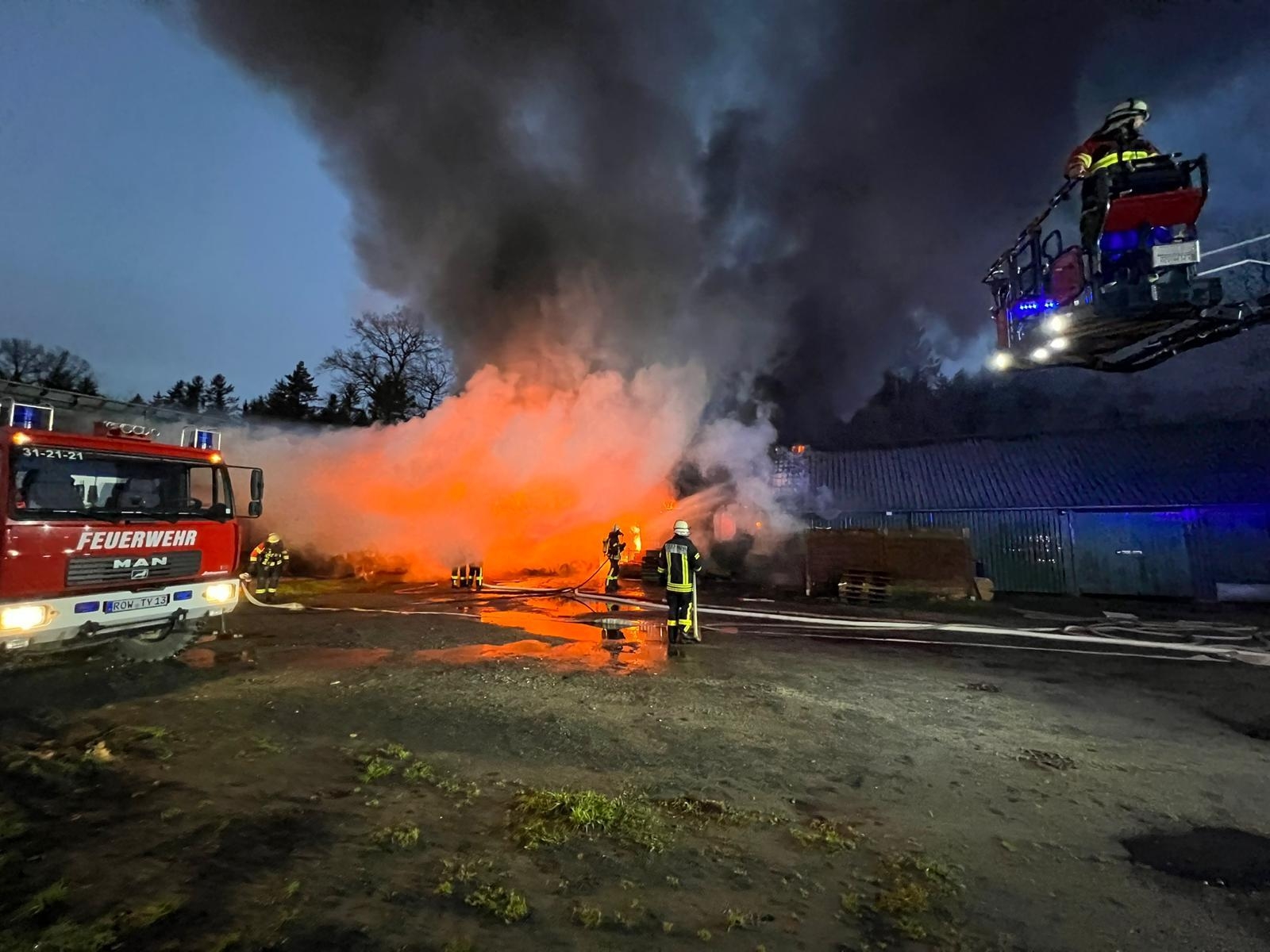 AUf einem landwirtschaftlichen Betrieb ist aus noch ungeklärter Ursache eine Scheune in Brand geraten, in der Scheune lagerten unteranderem auch Düngemittel. Wären bei diesem Einsatz noch Chemikalienschutzanzüge eingesetzt worden, hätten die Atemschutzgeräteträger Löschmaßnahmen unter "Vollschutz" durch führen sollen...